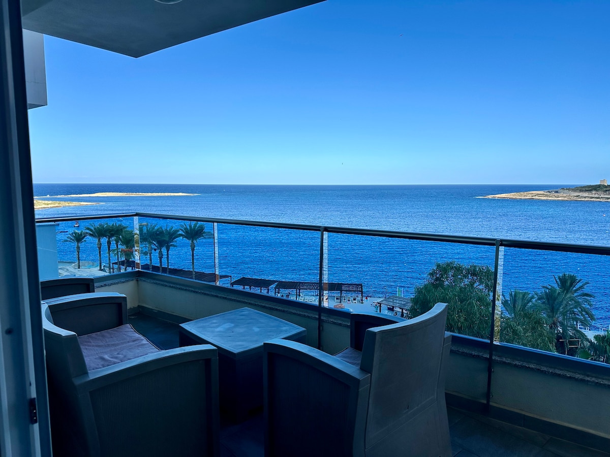 Sea view Suite - Time-share for rent at the Radisson Blu Resort & Spa, Golden Sands, Malta. The Radisson Blu Resort & Spa is a luxurious 5-star hotel set in a prime location at the Golden Sands Bay, l/o Mellieha, Malta. Situated on the cliff edge with unobstructed sea views. Host owns timeshare in a one-bedroom deluxe self-catering, sea-view Zenith Suite unit with magnificent sea views and overlooking the sandy beach of Golden Sands Bay. Sleeps 4 adults.