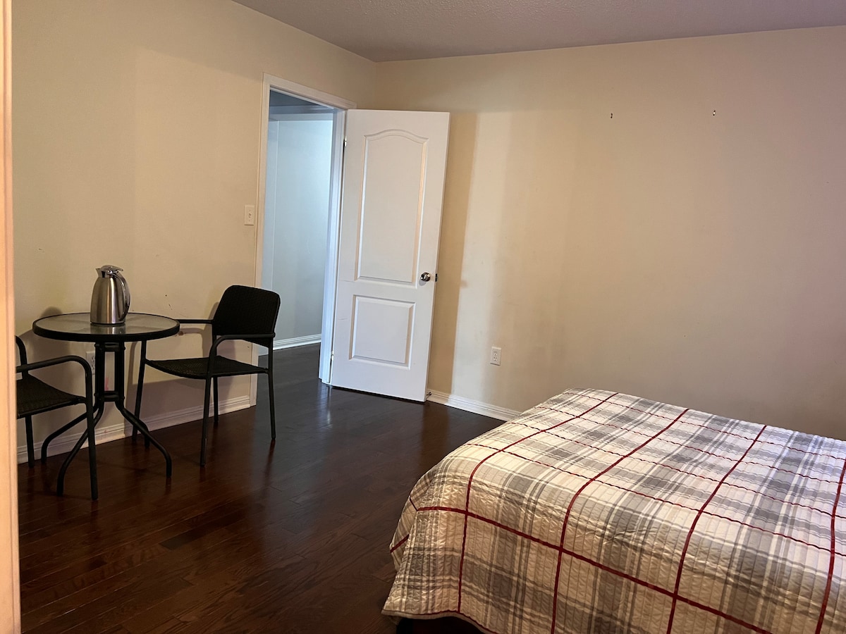 Relax with the whole family in a peaceful, quiet neighbourhood. Conveniently located nearby Pearson Airport. Walking distance shopping centre and play grounds and park. Enjoy staying in a newly renovated private basement unit, a bedroom room, full kitchen, and full bathroom. Our place can accommodate up to 4 guest, all for yourselves, with a Queen bed and pull-out day bed (King size) in the living room. Just landed? Contact us for pick-up from the airport!