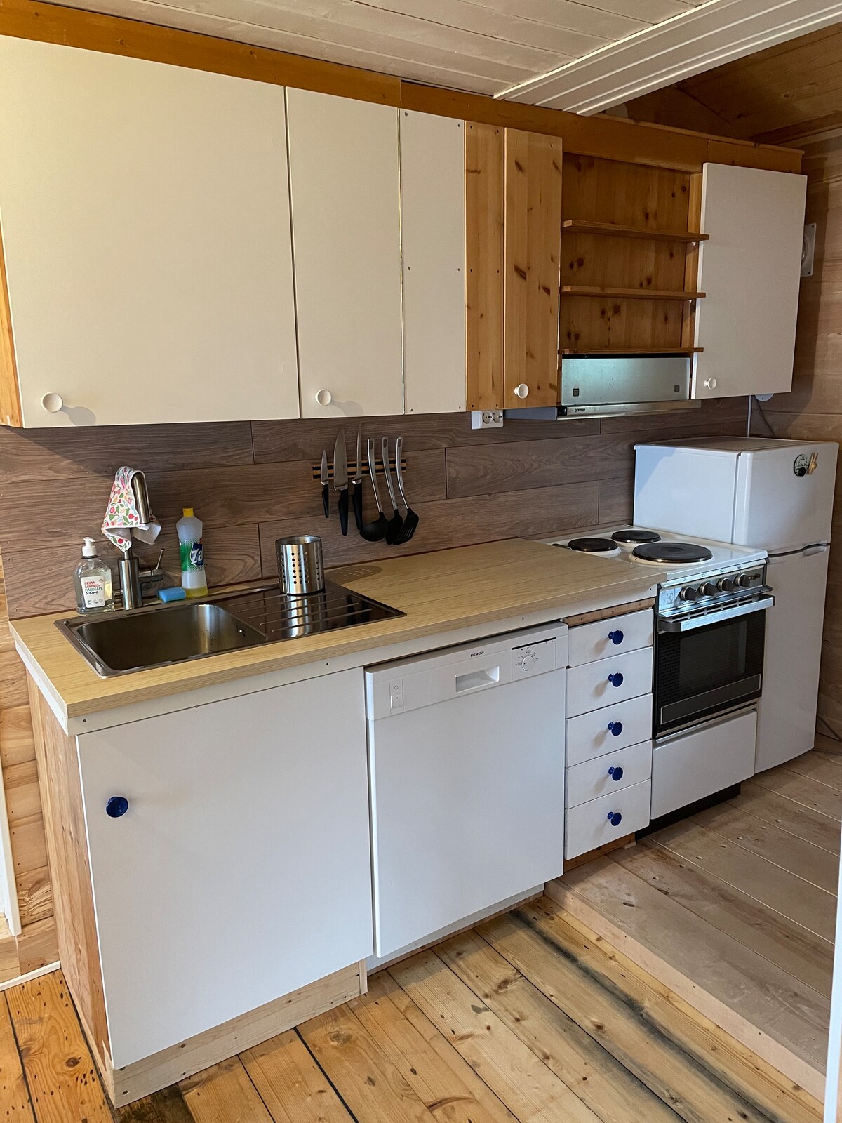 Small but cozy cabin in Storvika with water, electricity and wood burning. A sleeping alcove in the cabin and an annex with bathroom and bedroom. The cabin is located in the forest about 400 meters from Storvika Beach and outdoor area. Storvika is Trøndelag's finest beach and a super swimming area! Storvika also has several bolted routes for mountain climbing and the beach is widely used for windsurfing and kiting. Walking distance to train station and city center. There may be some noise from the parking lot and industry during the day.