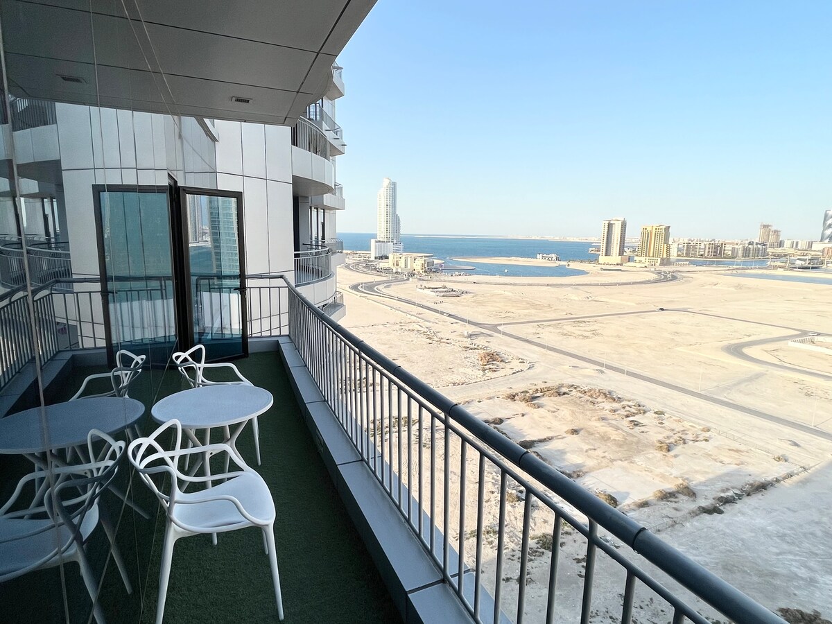 Enjoy a stylish experience at this centrally-located place. 1 bedroom with living room and 1.5 bath in the most luxurious area of Bahrain, good for 4 people, the sofa in the living room can be converted into a bed. gym, swimming pool, private parking with a stunning sea view