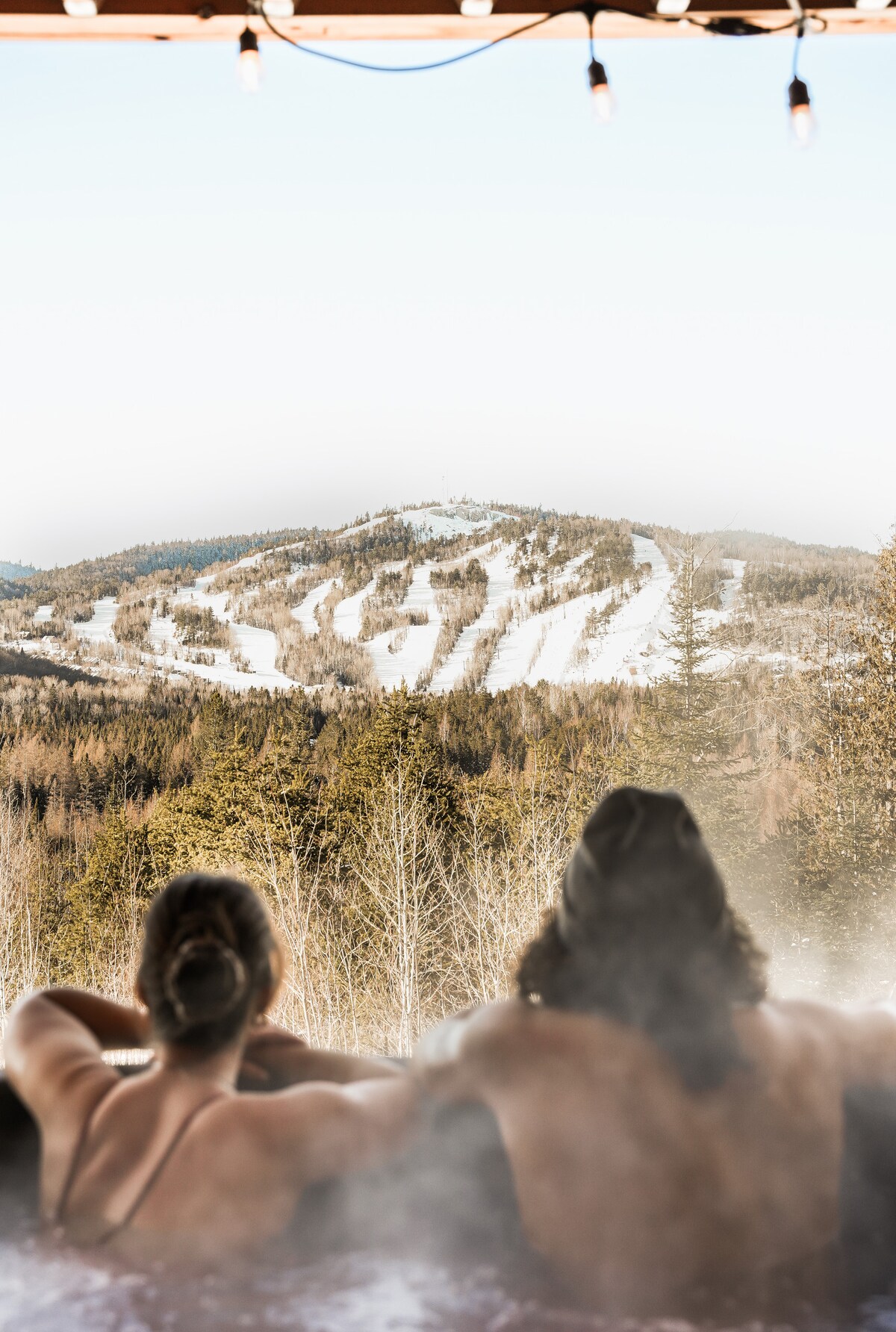 IG @lacime.station A place to "take a break" and relax for a few days, away from the chaos of everyday life. Allowing you to reconnect with your partner, yourself, and nature. It's with this in mind that we designed this destination. Built into the mountainside, the Perched Station features a relaxation area on three levels, a spa, a dry sauna, and an outdoor cold shower*, promoting a thermal experience in complete privacy.