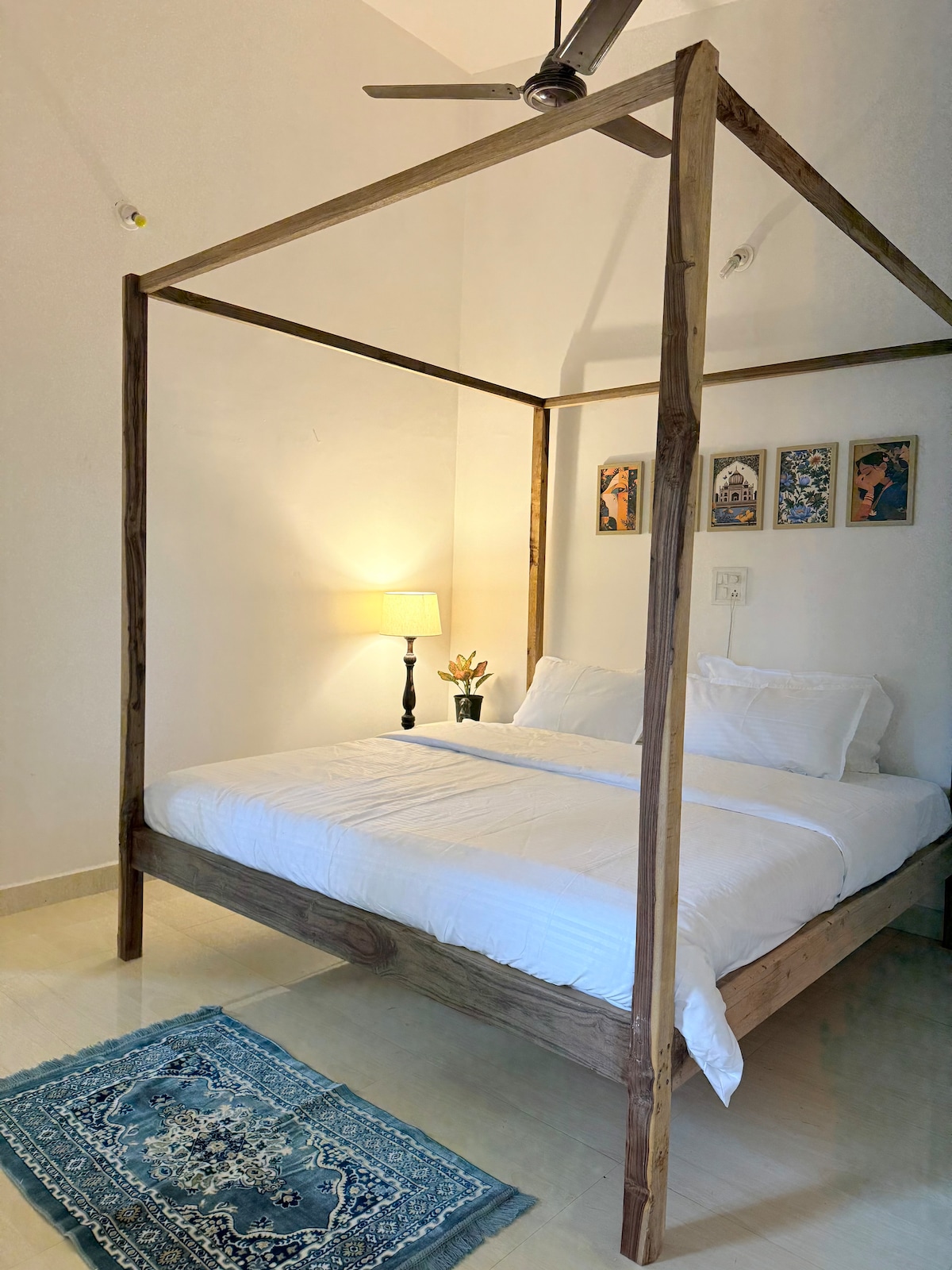 A beautiful boho vibe was front of my mind when creating this stunning cottage. Tucked away in a quite nook, overlooking an organic kitchen garden with the view of the fields, you will be trasported to a bygone era where things were just much slower. When spending time watching the birds & the bees, enjoying leisurely cups of tea, chatting on the balcony was part of the day. Surrounded by trees, you see another side of Goa. Yet you are literally 5 mins away from the party hub of Goa.