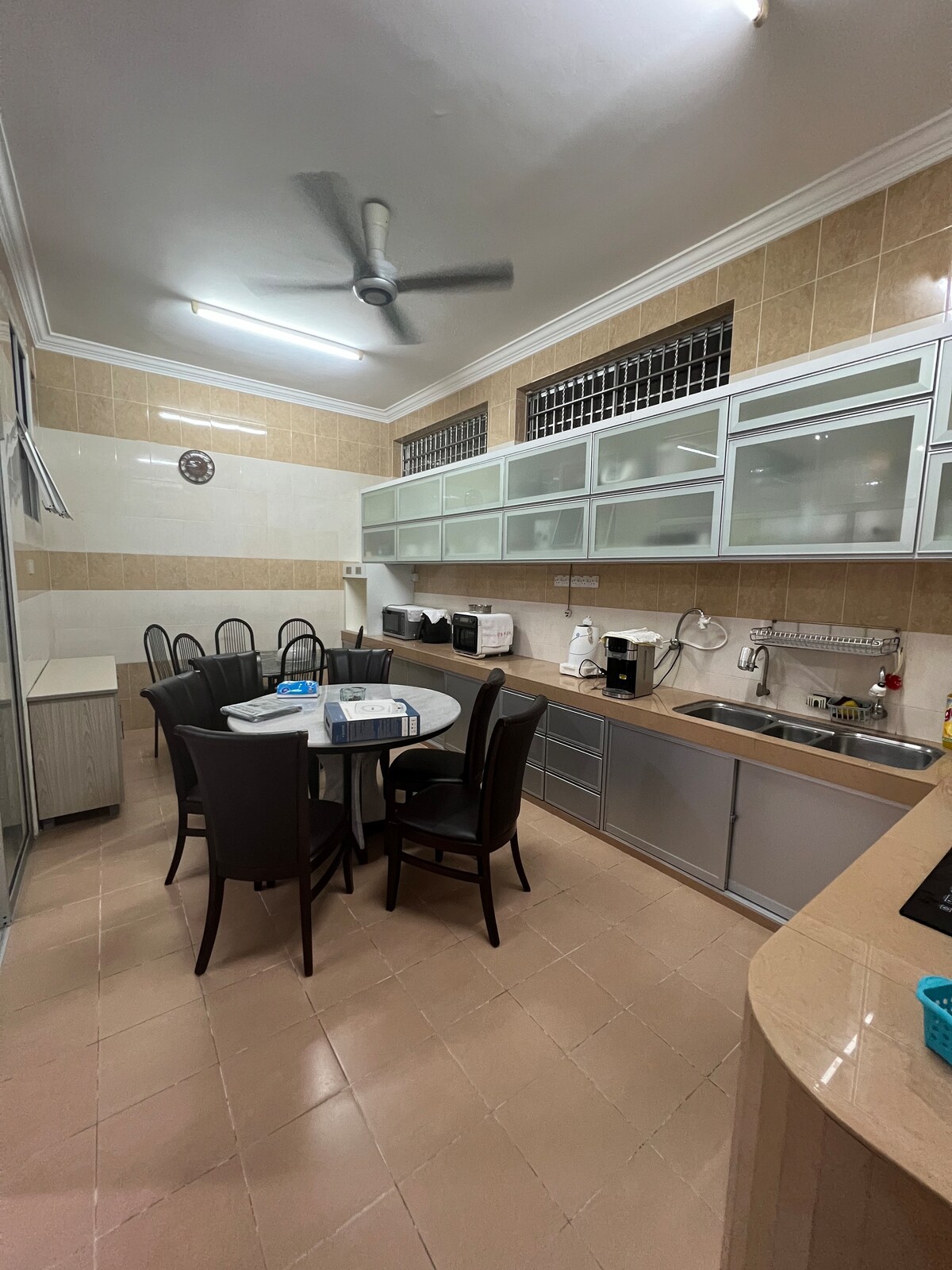 *Home in Sitiawan* Stay with us and experience the comfort of home. ~ Upstairs: 3 Bedrooms and Downstairs: 1 Bedroom + 2 × Queen-size beds + 4 × King- size beds +2 x Single size beds + 5 × Air conditioners + 3 × Private bathrooms with water heaters + 8 × Bath towels + 1 x Hair dryer + 8 x Shower gel & hair shampoo + 1 x water dispenser (Coway) +1 x washing machine ~ Living Room + Air conditioner + 1-Big Table + 1-Big Chair ~ Kitchen + Cutlery + Fridge + Kettle + Washroom