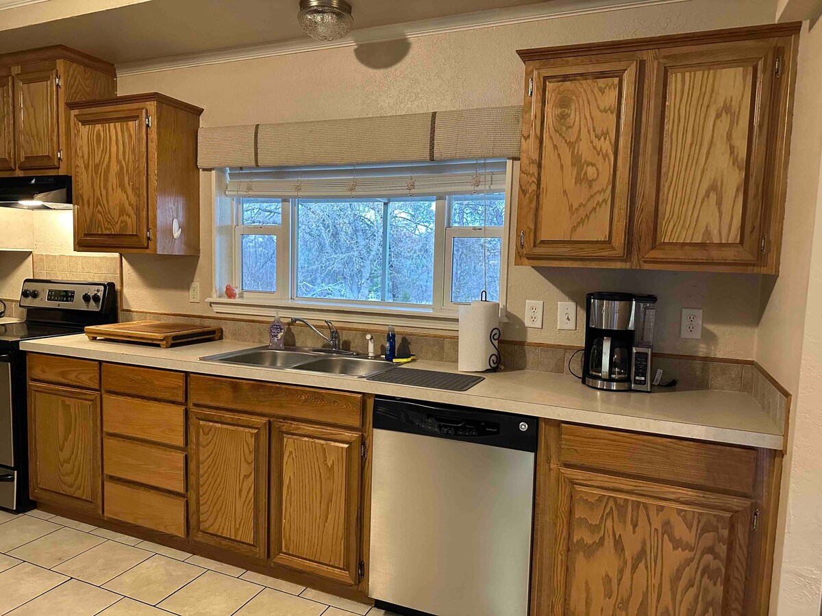 Convenient in town location. Enjoy the vaulted living room area, one bedroom, one bath villa decked out in an industrial décor, from reclaimed boxcar flooring wood countertops with steel trim to sliding barn doors. Everything you need to make your stay in Sulphur pleasant as possible at a budget friendly price. You are close to Chickasaw Recreation (Platt National Park) area, a unique downtown, arts centers and casinos as well as multiple fine restaurants.