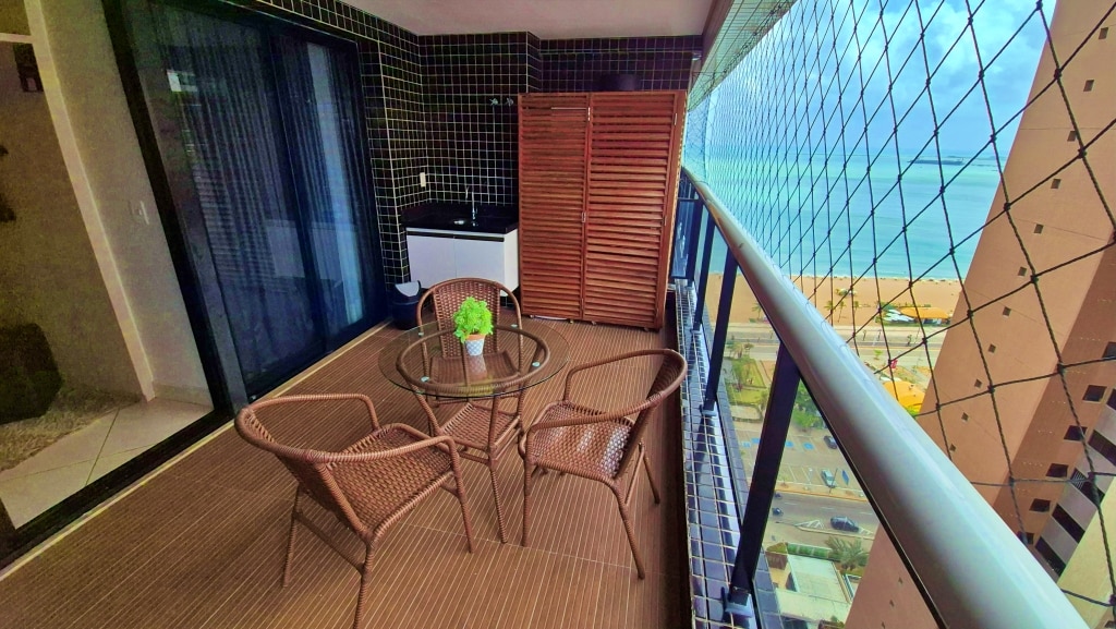 Lindo apartamento, todo climatizado, planejado para oferecer uma experiência de hospedagem super agradável. A varanda ampla e aconchegante nos brinda com uma relaxante vista mar lateral! E o condomínio ainda oferece a infraestrutura de lazer mais completa da orla da capital cearense com piscina coberta e descoberta, academia, squash, sauna, jacuzzi, salão de jogos e playground.