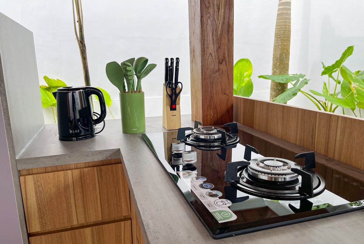 Villa estetik dengan kolam renang pribadi dan bathub. Unit Kamboja memiliki 1 Kamar tidur & kamar mandi dalam yang dilengkapi water heater, memiliki dapur lengkap dengan peralatan masak dan peralatan makan. Villa berkapasitas 2-3 dewasa.
