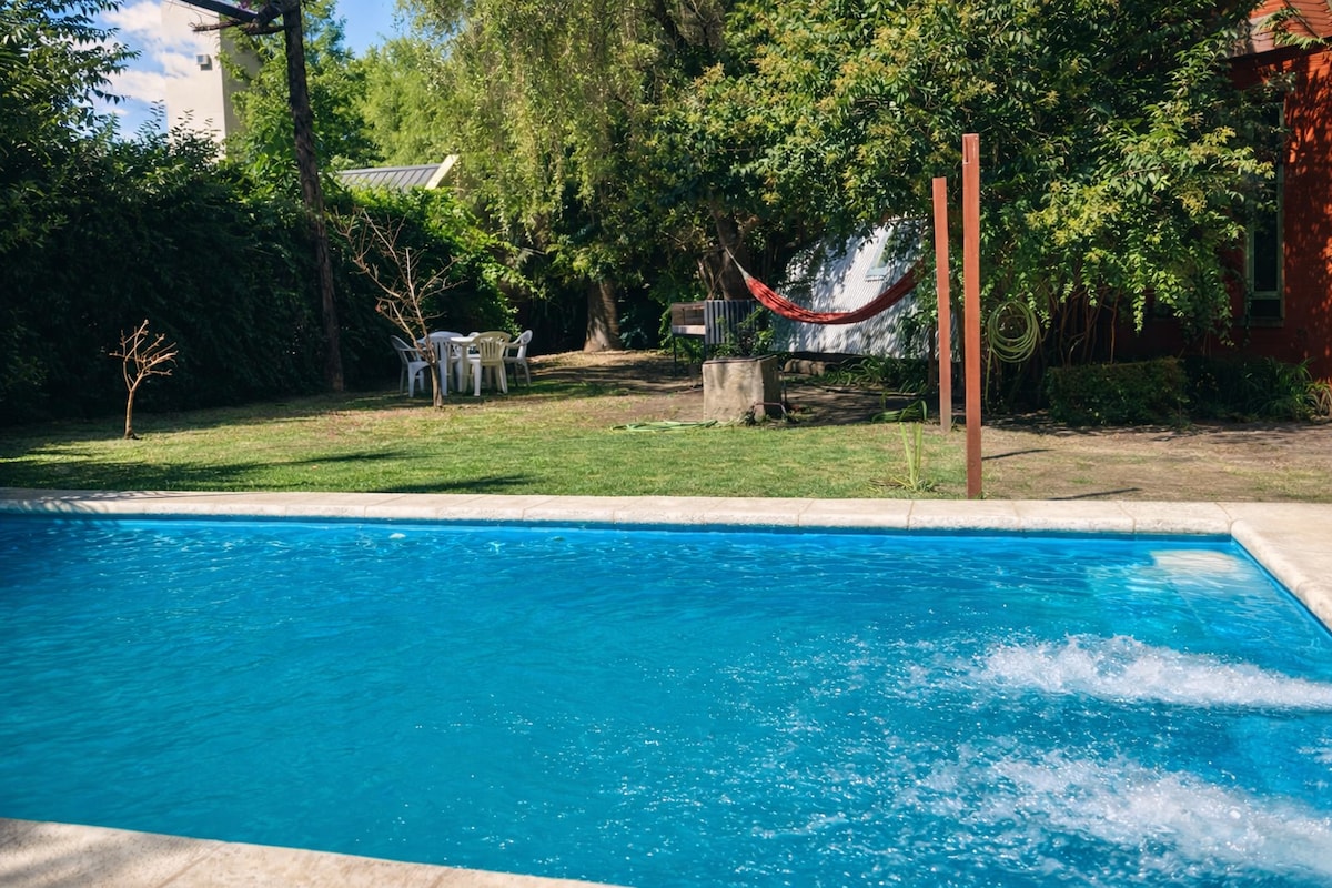 Take it easy at this unique and tranquil getaway. Come and see our exclusive cabin located in the central area of charming City Bell, a 5-minute walk from the beautiful shopping center and gastronomic hub that characterizes this town. 15 minutes from the city of La Plata and 35 minutes from CABA by Autopista BsAs-La Plata. Ideal for couples to enjoy the greenery, the pool (exclusive use for guests), a delicious barbecue, and a bike ride. An unforgettable experience. You can also bring your pet.