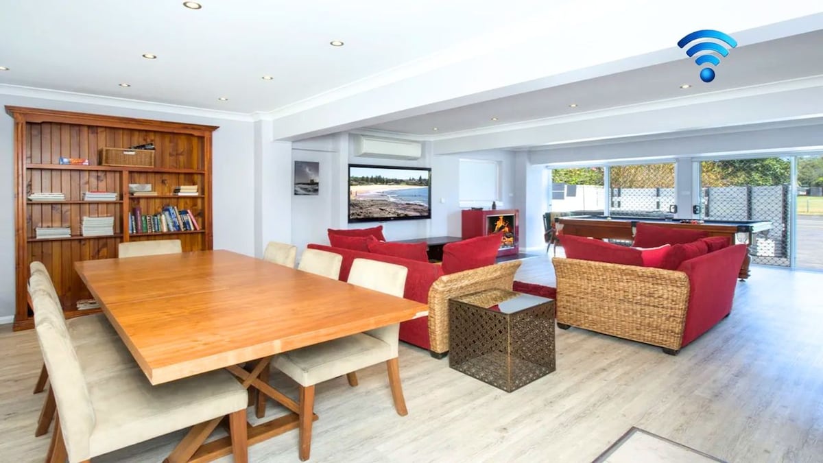 Steps from the sand, salty breezes, kangaroos in the yard and the sound of waves—The Sea Life is your perfect coastal beachside escape. This stylish 2-bedroom home blends indoor comfort with outdoor living, featuring a private open-air bathroom, BBQ deck, firepit, and a cozy fireplace for winter nights. Dogs welcome - with a 2-minute walk to Manyana's dog friendly beach and 24 hour off leash Washerwoman's Beach nearby, it's a coastal favourite for pet-owners.