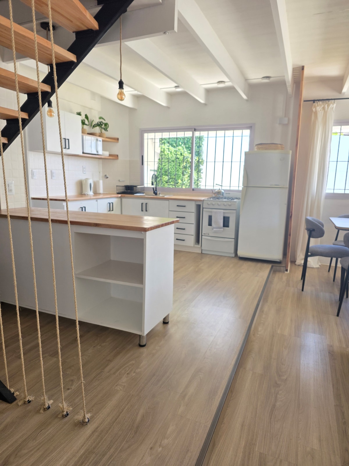 Spacious chalet for families and groups (up to 18) in Güemes, steps from the main dining district and close to Paseo Aldrey, Torreón, and Varese/Playa Grande beaches. Next to a market. -5 bedrooms, 16 beds, and 3 bathrooms. Bed linens and towels included. -Living/dining area, fully equipped kitchen, and laundry room. Covered grill and a patio with a large table. -WiFi, Smart TV, and a dedicated workspace. -Street parking and paid parking nearby. Pet-friendly. -No parties or events.