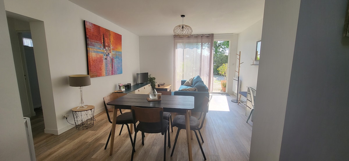 The MaranZen in the heart of the Poitevin marsh, a 3-min walk from the port, in the middle of a park of +1.2 hectares in a secure residence with pool + free parking, this entire 35 m² apartment includes 4 adult beds, 1 bedroom, SBD, bathtub, baby booster bed, toilet, living room, kitchen + garden & private terrace. At your disposal: linens/WiFi/microwave/TV+/Bluetooth speaker/hairdryer/iron/toaster/washing machine/Fridge, oven, etc. Quiet, wooded. Perfect for a Zen stay.