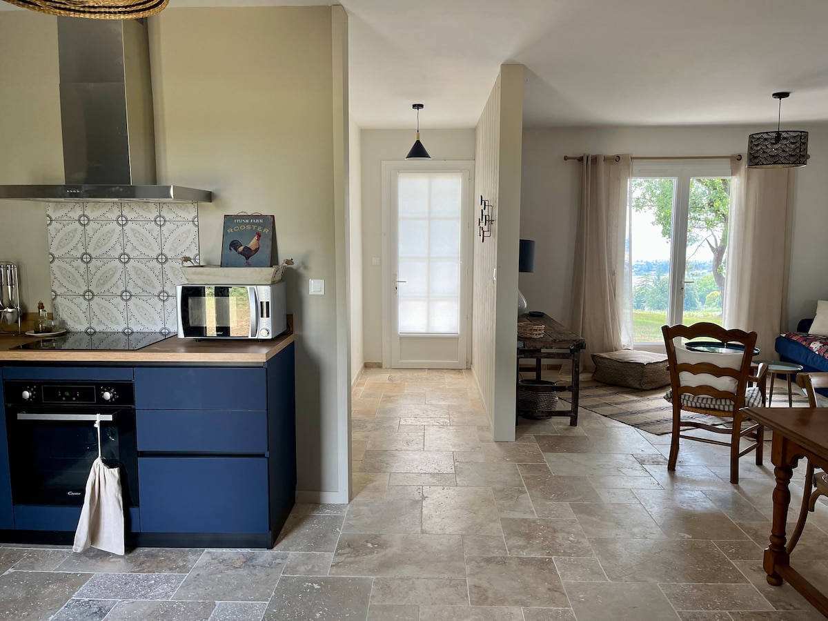 Our house is a beautiful 18th century stone building, completely renovated. Quiet and spacious, with a large plot with a pool (heated from March to November) - and an exceptional view of the surrounding countryside, it also offers immediate access to the center of the village. Shops, bars, restaurants, grocery store, market and even cinema are a few minutes walk.