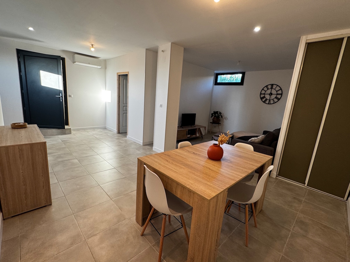 Welcome to this lovely 65 m2 apartment located in the countryside and close to the city. Less than 10 minutes from Narbonne, 25 minutes from the beaches of Narbonne-Plage or Gruissan, you will find in the charming village of Marcorignan a bakery, a pizzeria and brewery, a grocery store, a pharmacy. The apartment is located within the walls of our accommodation and has an independent entrance. Parking is reserved for you outside the door. It can accommodate 4 people (one bedroom and a sofa bed).