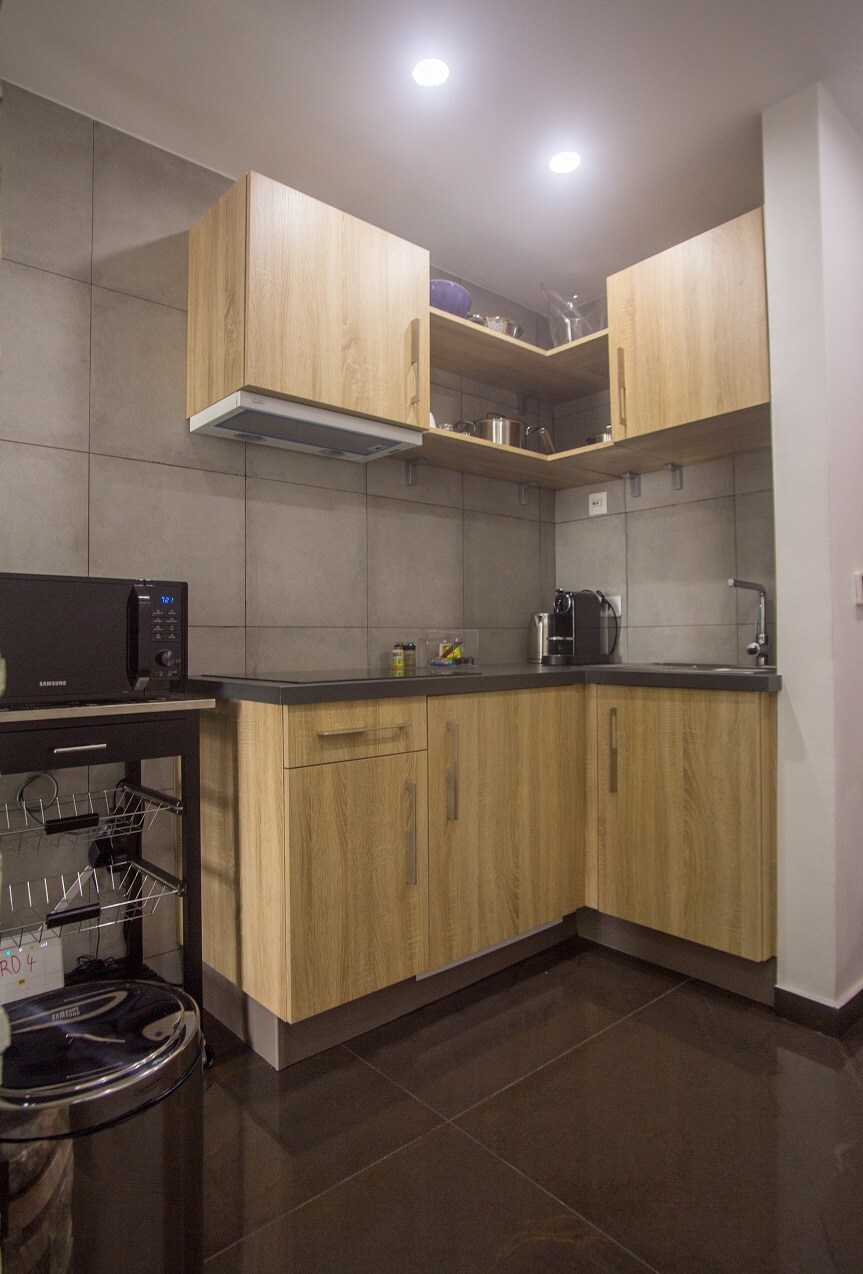 Beautiful secure studio with day and night guard. Easy access Ground floor with opening onto a small terrace. It has a large 55-inch screen, a safe, a Bluetooth speaker with Harman/Kardon quality sound, a washing machine, an iron, a robot vacuum cleaner, a connected voice assistant, an air purifier and other equipment. The bedroom floor is covered with floating parquet