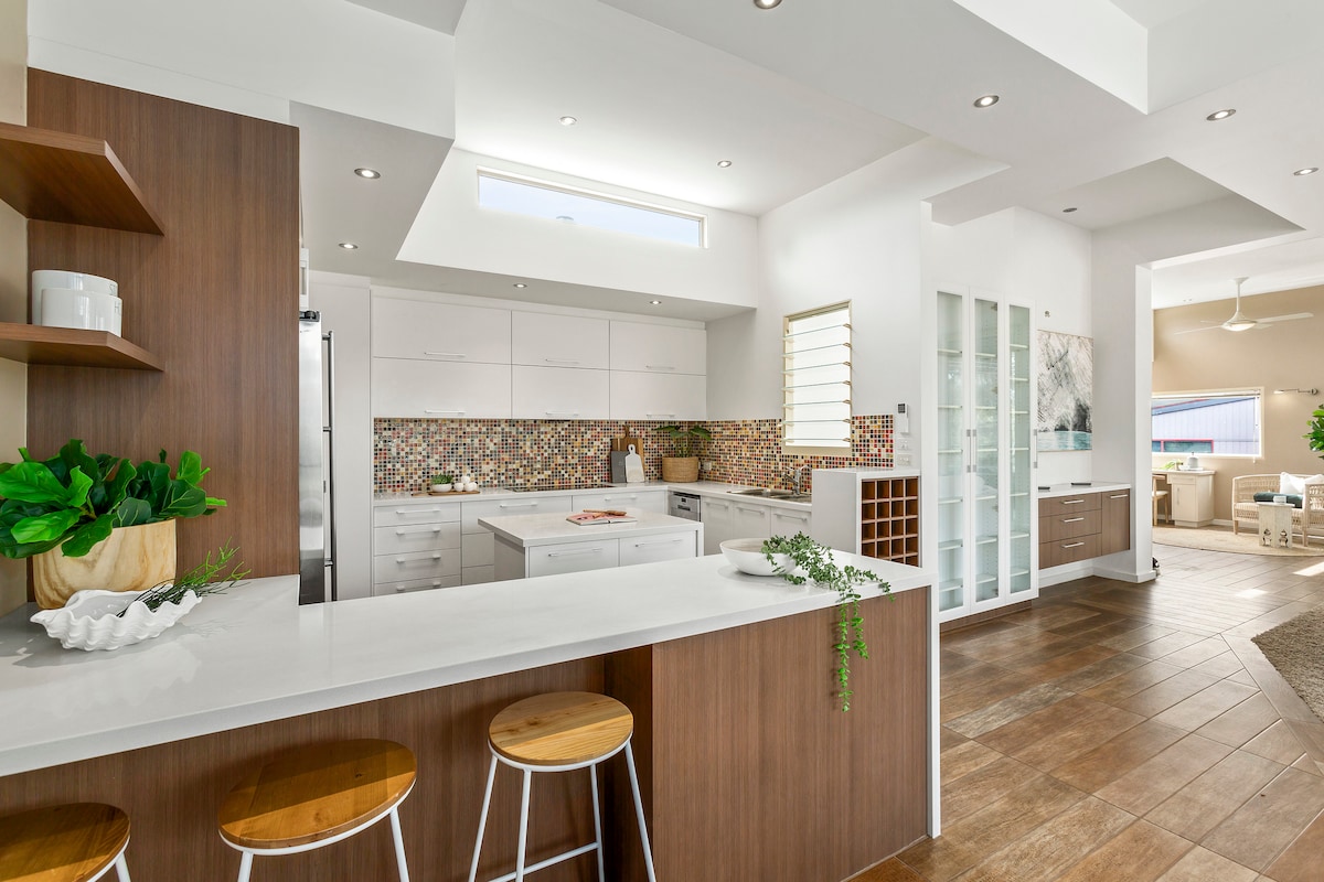 Modern Holiday Home with heated pool and spa jet.
