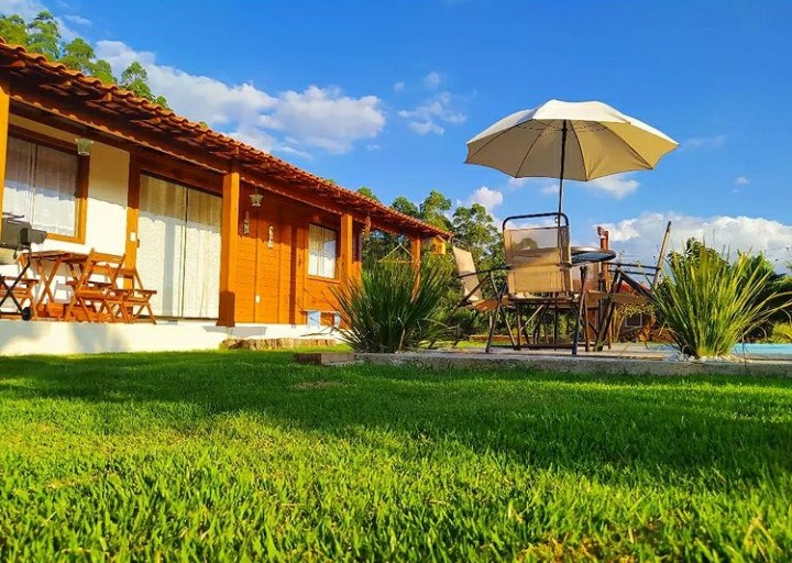Sítio Reichart feels like a true nature retreat — perfect for who appreciates peace in a family-friendly setting. The charming wooden chalet has a cozy living/dining area with a bathroom and upstairs a bedroom. Just 21 minutes from Marechal Floriano and 36 from Domingos Martins. Set within tropical forest, the property features a spacious lawn, a fish pond, natural swimming pool, pool table, barbecue area, and other amenities that create the perfect setting for relaxing days in nature.