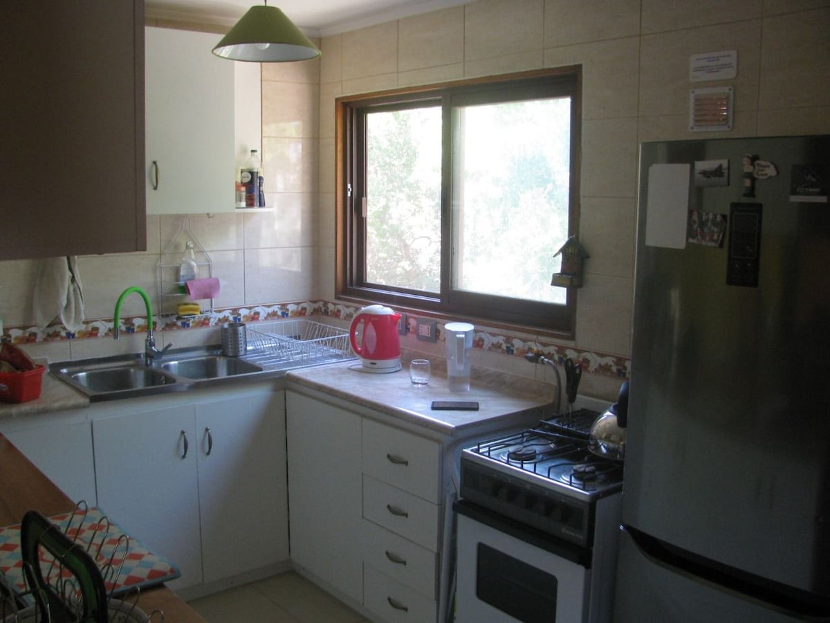 Excellent and quiet private house fully equipped with swimming pool and private hot tub in Olmué, on a plot of 2,000 square meters. We are between stop 33 and 34 of the Granizo sector, a few blocks from the main street in a family sector. 2 km from downtown. The house has 3 bedrooms, 1 double, 2 bedrooms with 2 beds, 1 bathroom and a fully equipped kitchen. We have a wood-burning fireplace-type heater in the living room and a roofed terrace in front of the pool. We are pet friendly!!