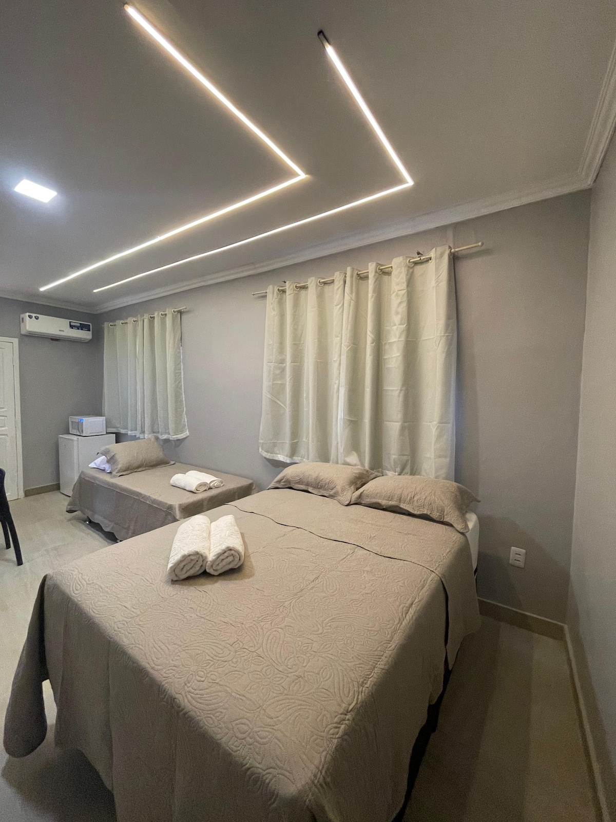 Mini Studio ground floor for private use, 500 meters from Santa Maria hospital, in Ananindeua. It has 1 full bed, 1 single bed and 1 bathroom. Its use is reserved, with furniture, bed and bath linen, air-conditioning, refrigerator, stove, TV, microwave, coffee maker, blender, sandwich maker, internet and 1 parking space. We are located on one of the main and busiest avenues in Ananindeua. Therefore, it is subject to potential noise from moving vehicles.