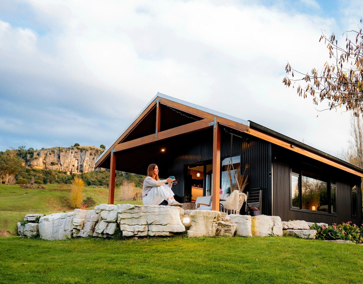 River Song Cabin at Ripples Retreat is all people imagine about NZ — rolling hills, rainforest, a calm river & birdsong. Hand-built on our family farm & surrounded by Hobbit landscapes, this romantic king studio cabin sleeps 5 with a cosy bunk nook. Couples love the outdoor bath & stargazing; families enjoy kayaking, fishing & meeting the sheep. Many stay 3–5 nights for waterfalls, glowworms, Hobbiton & beaches — or as a soft landing or gentle goodbye to NZ. Stay 4+ nights for a free farm tour.