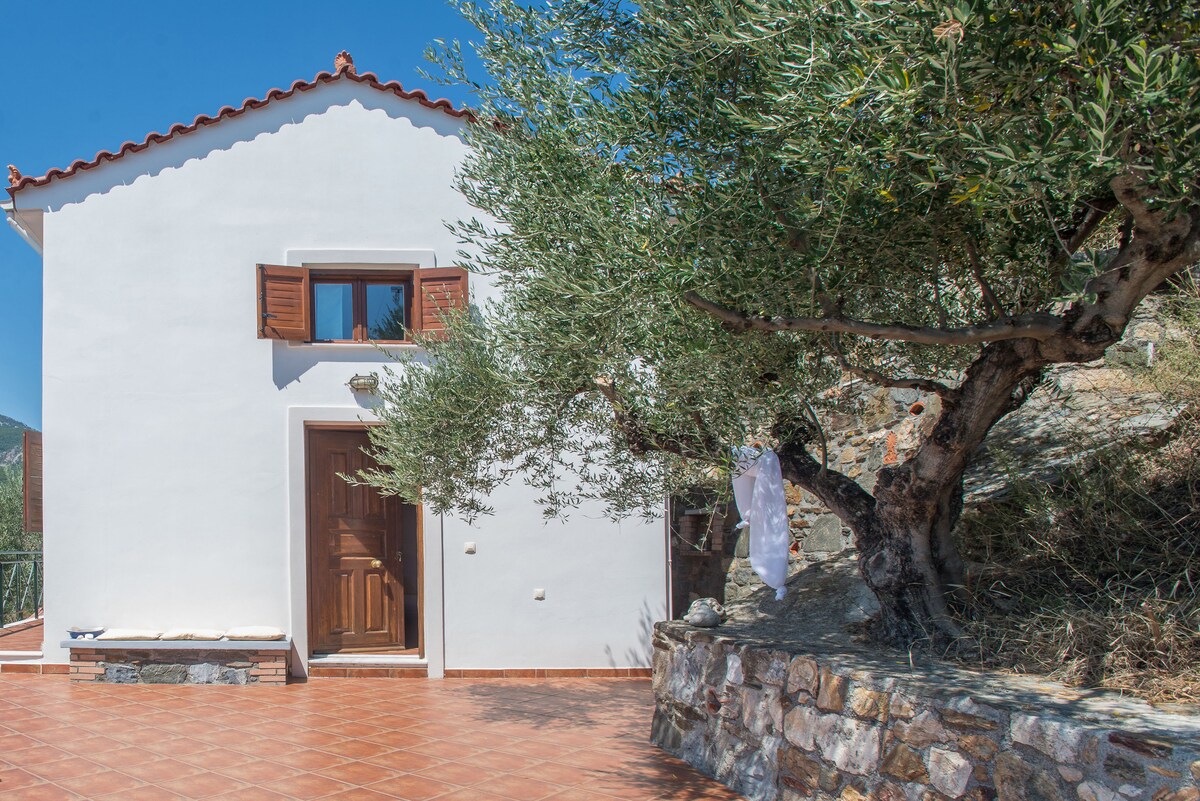 Ανεξάρτητο ισόγειο κατάλυμα με πατάρι, ηλιόλουστο ιδιωτικό κήπο με πέργκολα και θέα στον ελαιώνα 11 στρεμάτων, κατασκευασμένη από φυσικά υλικά, με πολυτελή στρώματα και λευκά είδη, χειροποίητες κατασκευές, που μπορεί να φιλοξενήσει 2-4 άτομα. Ζήστε την εμπειρία της απόλυτης ηρεμίας και ξεκούρασης.