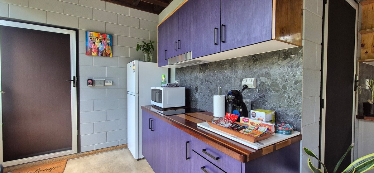 Ever stayed in a shipping-container renovated into a self contained unit (or ‘donga’ as we call them in the NT)? Why not give it a try! It has only previously been used for travelling family but its too good not to share with Airbnb guests. The space is fully equipped for your stay with a private bathroom and kitchenette. It is insulated, has a ceiling fan and air-conditioning. There is an additional wall fan in the bathroom and a clothes hanger for your convenience. No smoking on the property.