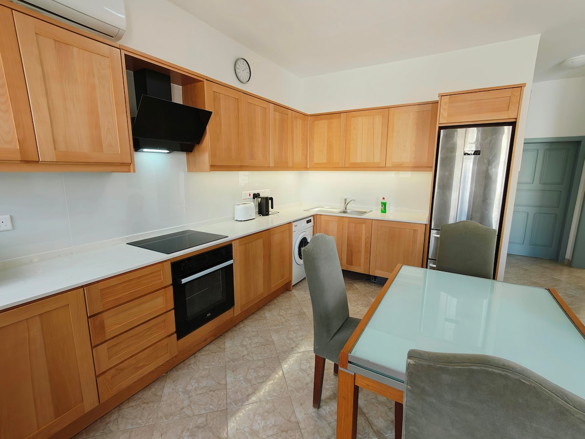 With the Mediterranean sea at the doorstep, we bring you perfect Hygge - coziness & contentment - an escape from the mundane in beautiful scenery. Seafront, tastefully decorated 2 bedrooms, luxurious shower, fully kitted kitchen & living/dining with sea views. Fully furnished, high quality bedding & outdoor space. Excellent location with restaurants, cafes & supermarkets at walking distance & a park just opposite. Ground floor, separate entrance, easily accessible. Free parking.