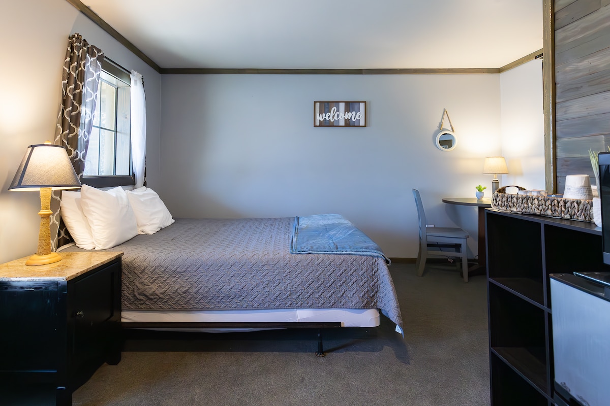Just 3 miles from I-24 and walking distance to Patti’s. Enjoy your stay within walking distance of all that Grand Rivers has to offer. Convenience is key here with delicious Cabin Pizza right in the same complex! This cute, newly renovated little cabin apartment is the perfect spot for a couple (or a couple of friends!), hunters and fishermen to get away. Walking distance to Patti’s, Badgett Playhouse, Iron Bell Coffee, Between the Lakes Taphouse! Firepit & seating area out back for relaxing!
