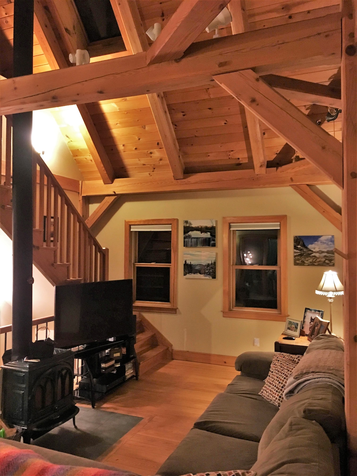 Badger Cottage offers a true rustic Vermont experience nestled in the woods with spectacular views and a quiet and peaceful ambiance. Once a barn, carefully reconstructed on the owners’ property, and modernized to today’s standards, this post and beam cabin is warm and cosy in winter and cool in summer. Well behaved dogs are very welcome and will enjoy the walks in the woods. Covid vaccinations are required. The owners live in an adjacent house with their very friendly Border Terrier