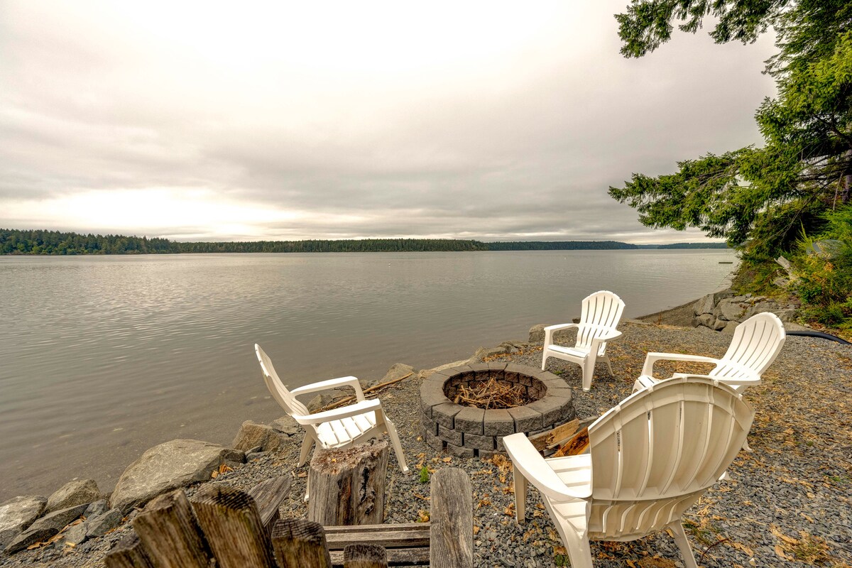 Enjoy the view of the Hood Canal through the front room windows or while relaxing on the porch. Fully furnished, with dining/living areas, 2 bedrooms with queen beds, 1.5 baths and a full kitchen with all the essentials. The living area has a sofa sleeper with full-size mattress. Additional amenities include a cozy wood stove, cable TV/DVD player, and a small back porch with a propane fireplace and sitting area. We have hotel rooms at next door for additional guests