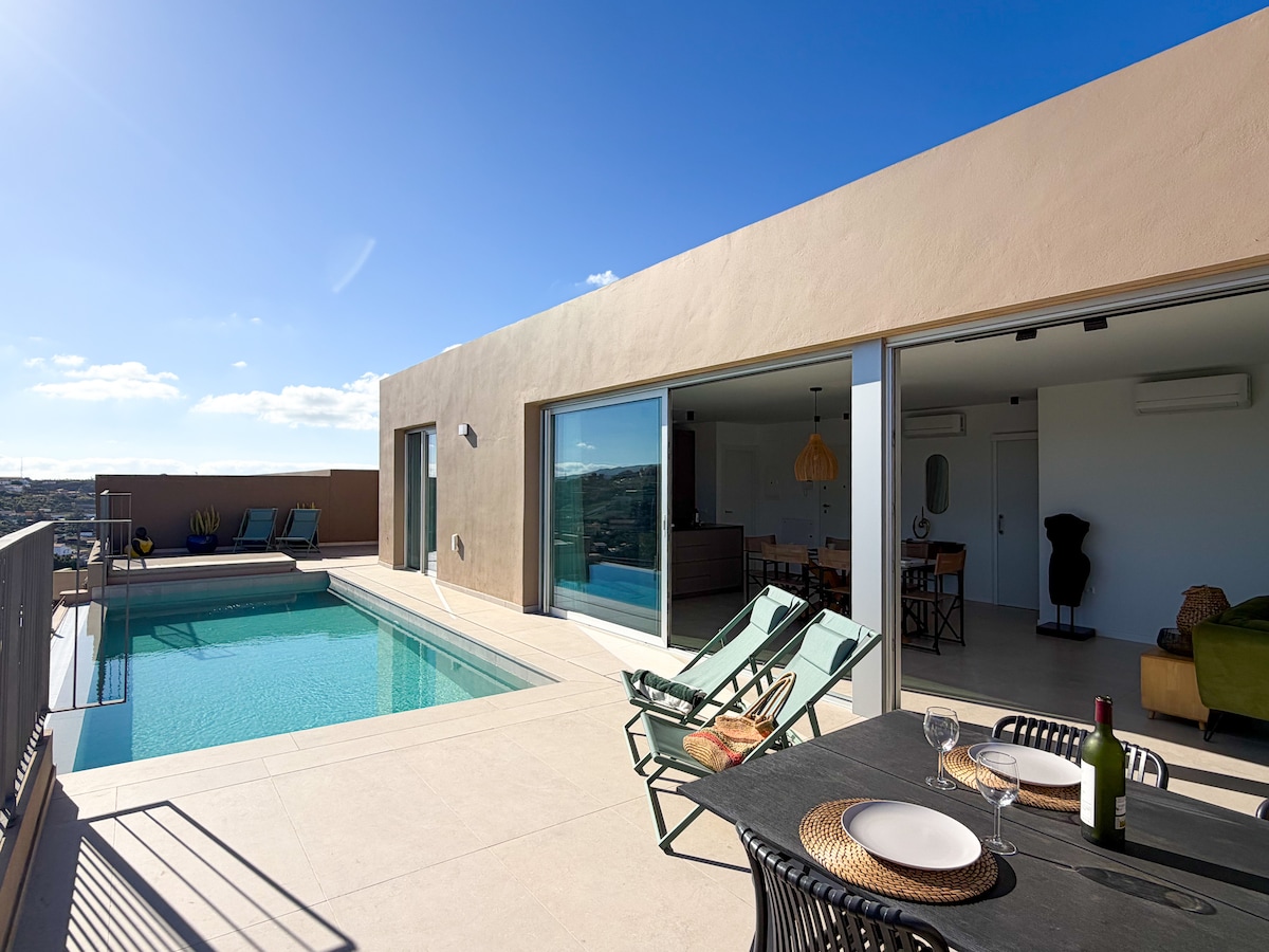 Ready to experience your dream vacation by the sea? With a very careful decoration, our luxurious home offers spaciousness and comfort to enjoy a few days of family rest in the unique and idyllic atmosphere of the Arguineguín coast. It has a living room with a kitchen, 3 bedrooms, 2 bathrooms, a rooftop solarium and a large terrace luxuriously equipped with tables, chairs, sun loungers and a wonderful private pool overlooking the ocean and the most beautiful sunsets in Gran Canaria
