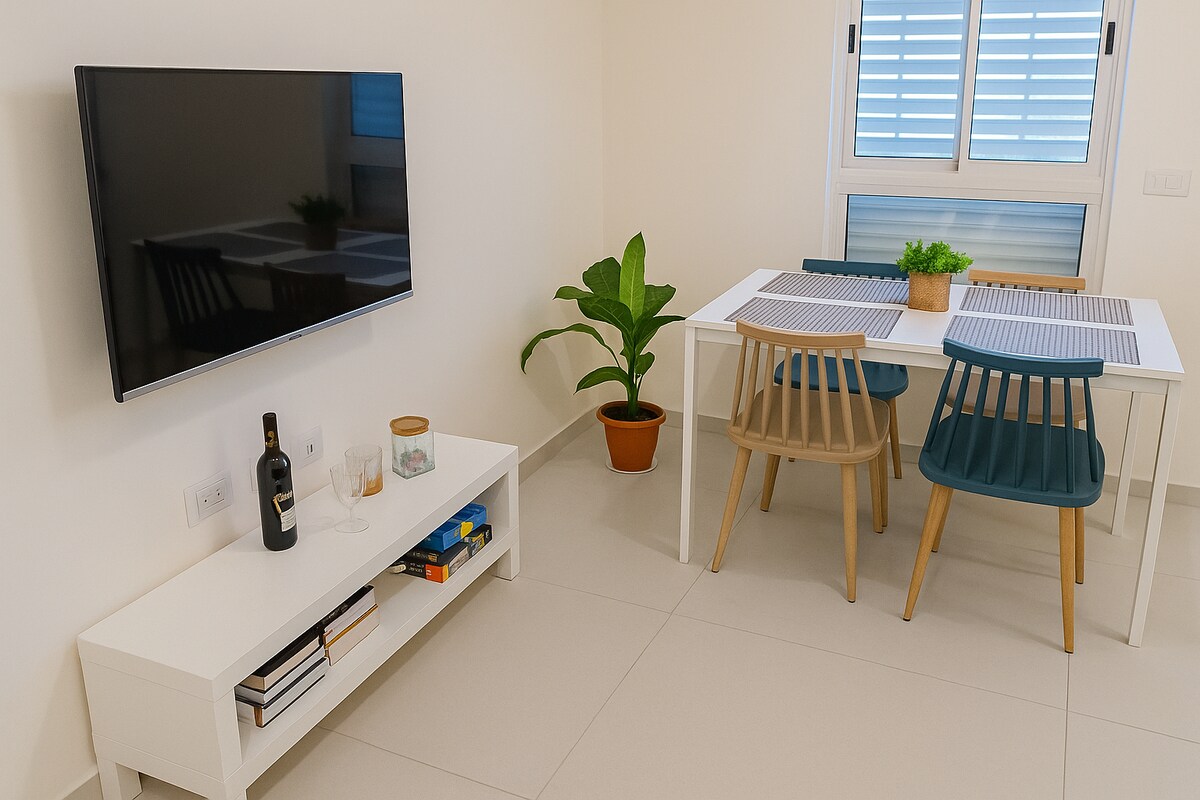 Quiet garden suite on the ground floor in Tel Aviv Enjoy a calm stay with direct access to a neat garden with table and chairs — perfect for relaxing in the city. Ultra-fast fiber-optic internet 📶, powerful air conditioning, smart TV with many channels. Fully equipped kitchen, neat bathroom, washer and dryer in the garden. Free street parking nearby 🚗 and a shared, well-equipped bomb shelter 5 meters away. Ideal for couples, solo travelers, and business guests seeking comfort.
