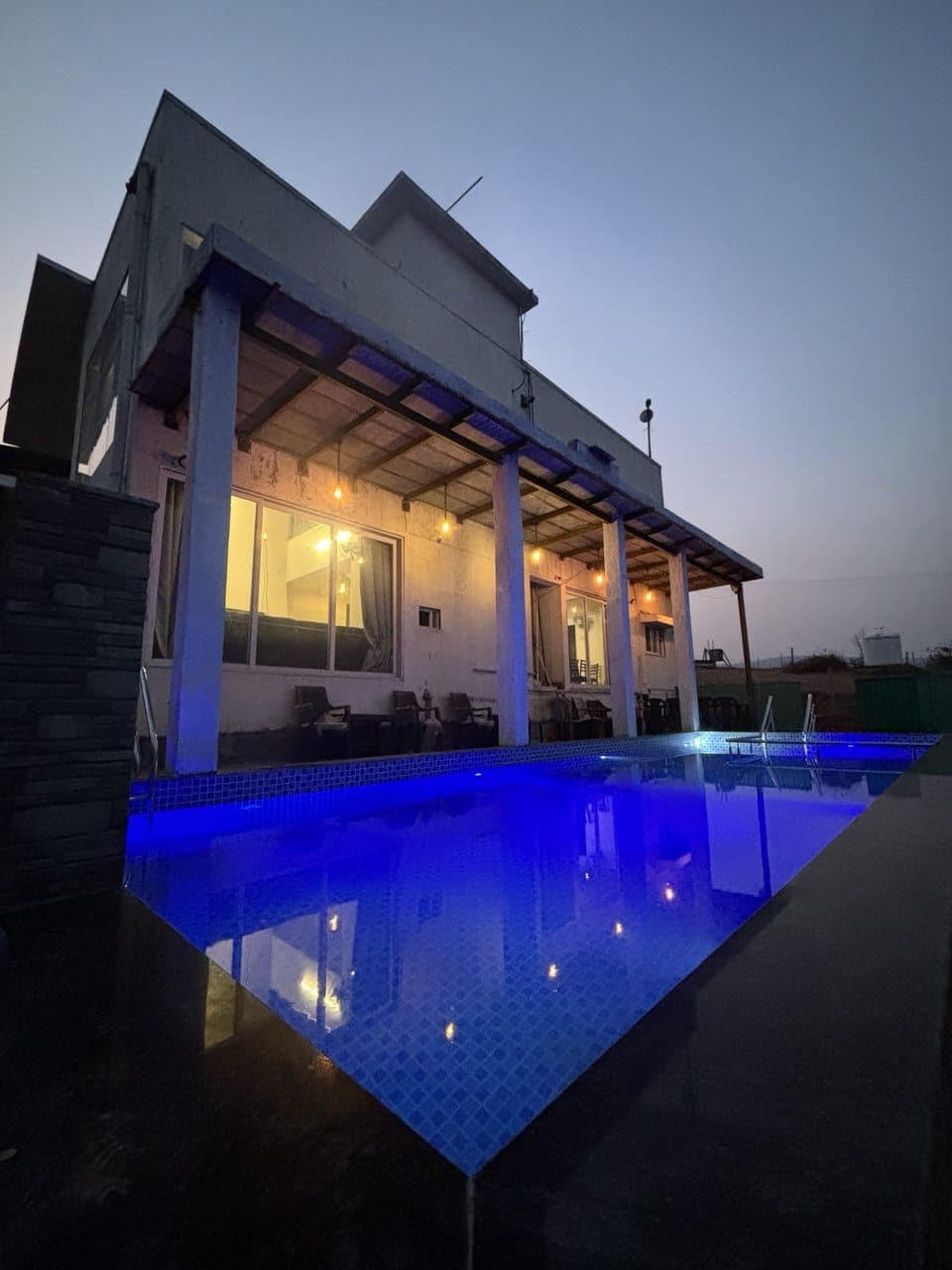 Experience a serene retreat, a picturesque 3-BR 4-Bath farmhouse in Nasrapur, Karjat. This haven, adorned by lush greenery, features a pool, a flowing river & featured in Hotelier India. Crafted with love, the rustic design offers spacious, open areas, inviting a sense of freedom & communion with nature—an ideal escape for a city detox. It stands out for commitment to environmental sustainability. This villa can sleep 15 guests overnight & 30 guests for the day making it ideal for parties.