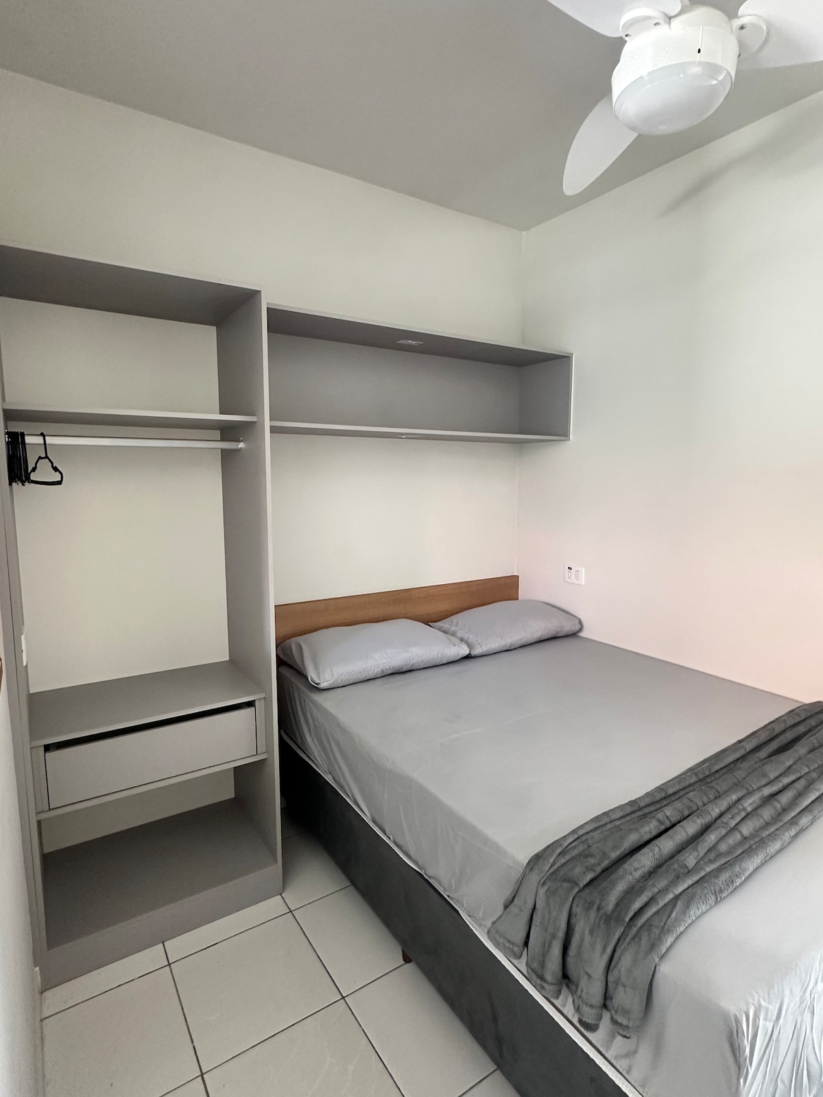PAY IN UP TO 6 INSTALLMENTS WITHOUT INTEREST! ** EARLY CHECK-IN/LATE CHECK-OUT UPON PAYMENT OF FEE AND AVAILABILITY** Beautiful Studio Front Sea, with air-conditioning, located in Balneário Caravelas, fully furnished with a double bed and 2 folding single puff mattresses. The condominium has a large terrace with a beautiful view of the sea and mountains, as well as a view of the entire coastline. The condominium has an exclusive (covered) parking space with 24-hour monitoring.