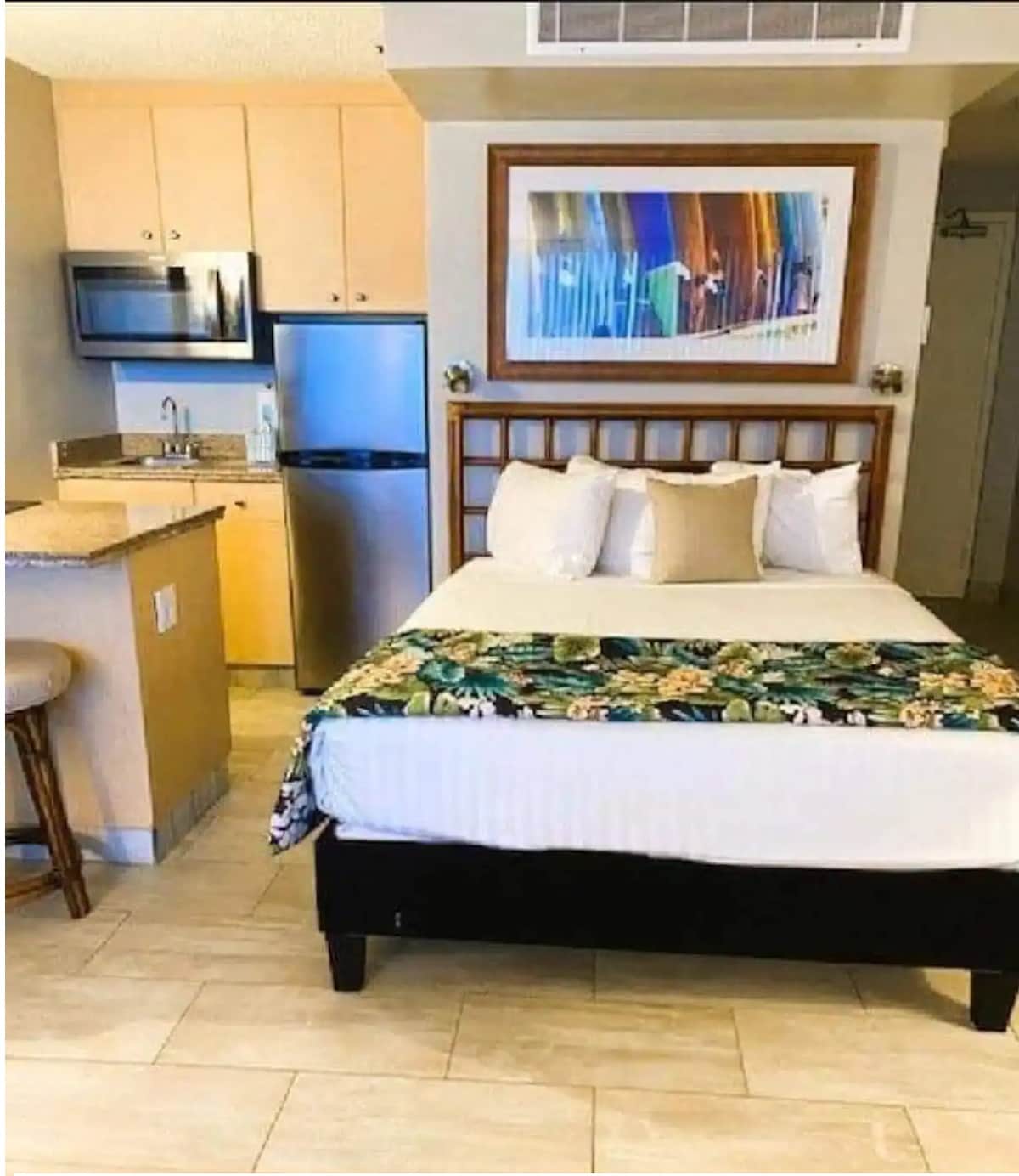 Welcome to my hotel-zoned oceanfront, direct ocean view studio condo Enjoy stunning floor-to-ceiling ocean views and breathtaking sunsets over the neighboring islands. See and hear the ocean from your bed and your private lanai. Featuring a comfy king bed, central AC, smart TV, fast Wi-Fi, fully equipped kitchen, and in-unit laundry. Free on-site parking, 1 space No resort fees, no other additional fees Oceanfront, direct ocean view on the 4th floor of the Mahana at Ka'anapali
