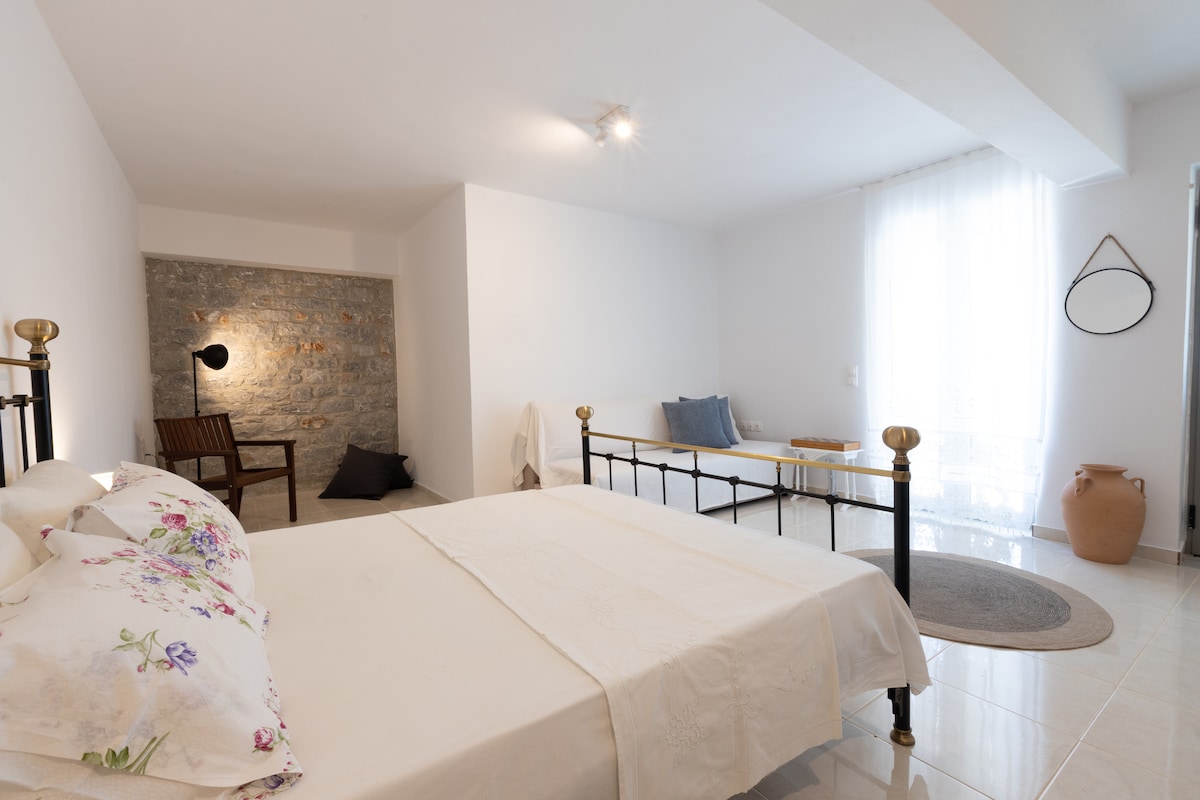 Please also check "Love Nest" and "Summer Love" Houses for availability. House is on the beach. This place is good for couples, solo adventurers, LGBTQ+ firiendly, business travelers and pet firendly. You will wake, eat, live, sleep, dream on the beach! Place is unique, it is like living on a Yacht with the luxury of a house. It is an Authentic Greek Fisherman's House, used to be an Inn and a family house later on. Now it is divided in three separate houses, sharing the same beach.