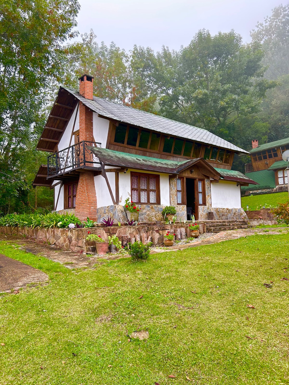 Enjoy a cozy getaway in our colonial-style mountain cottage with rustic details, located just 5 minutes from the center by car. Surrounded by nature, it has a warm room with a fireplace, a spacious terrace for relaxing, pool table and ping pong, grill and decor that evokes the tranquility of mountain life. Perfect for relaxing, connecting with nature and enjoying a unique atmosphere away from the hustle and bustle of the city.
