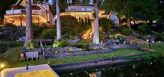 Perched over Whitman Lake, escape with a cold beverage on your large deck that makes you feel "within the trees." Surrounded by old growth cedars, watch as the resident bald eagles take turns diving into the lake for their lunchtime snack. Walk down the railroad tie stairs and through our "naturally" landscaped yard to find your private dock with a kayak that is free for guests. Whitman Lake is just ~45 min south of Tacoma and ~45 min north of MRNP... a perfect home base for your adventures.
