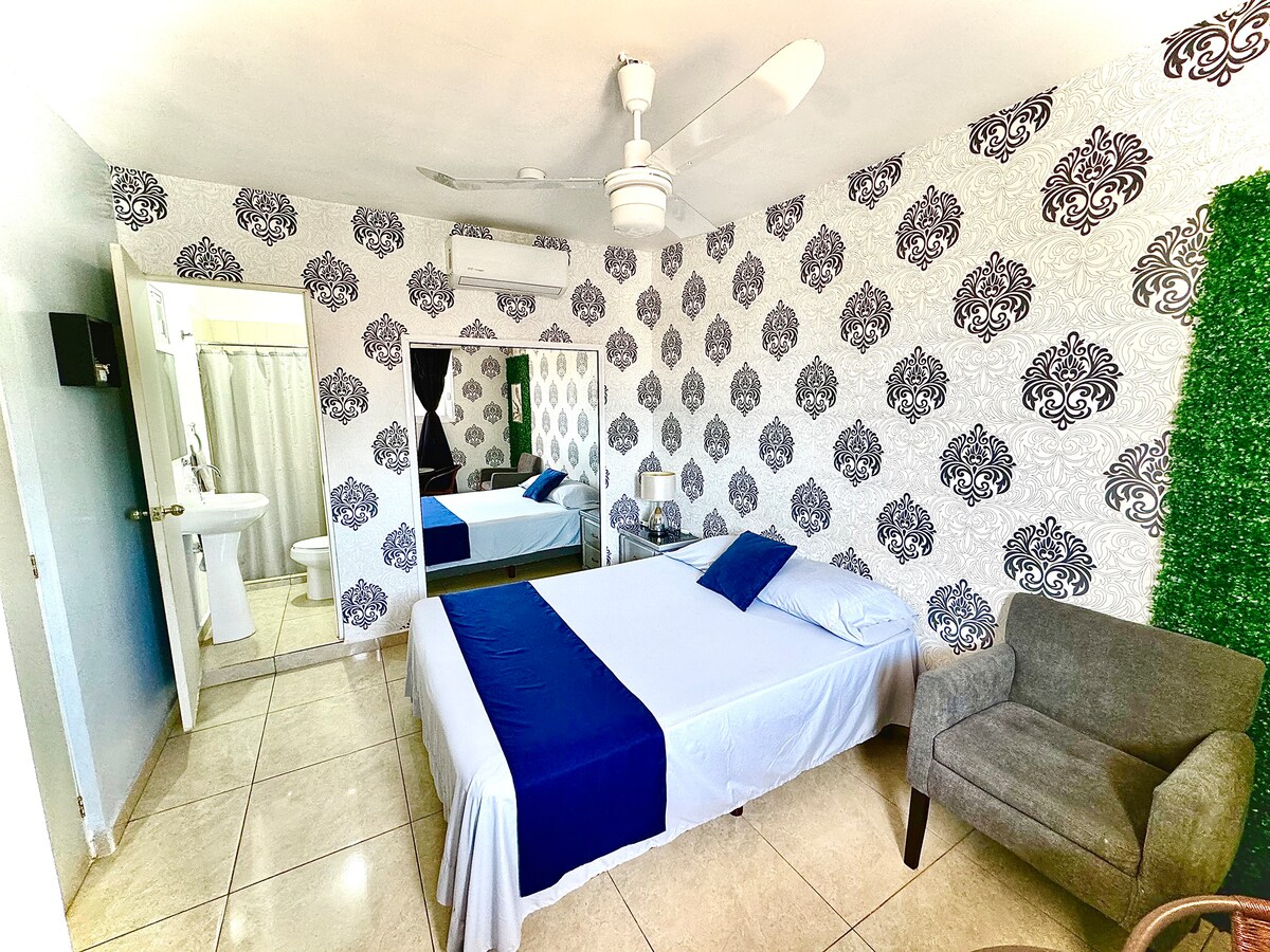 Newly built apartment with an "independent" entrance on the upper floor, where you can enjoy your stay pleasantly. We are 10 minutes from the beach and the pier as well as the Aquarium and the "Teodoro Mariscal" Baseball Stadium, 15 minutes from the Mazatlán FC “Kraken” soccer stadium. We are located in a safe and easily accessible area. It has its own bathroom, climate control, a queen-size bed, a table with 2 chairs, a minibar, a microwave, internet, a smart TV, and a recliner.