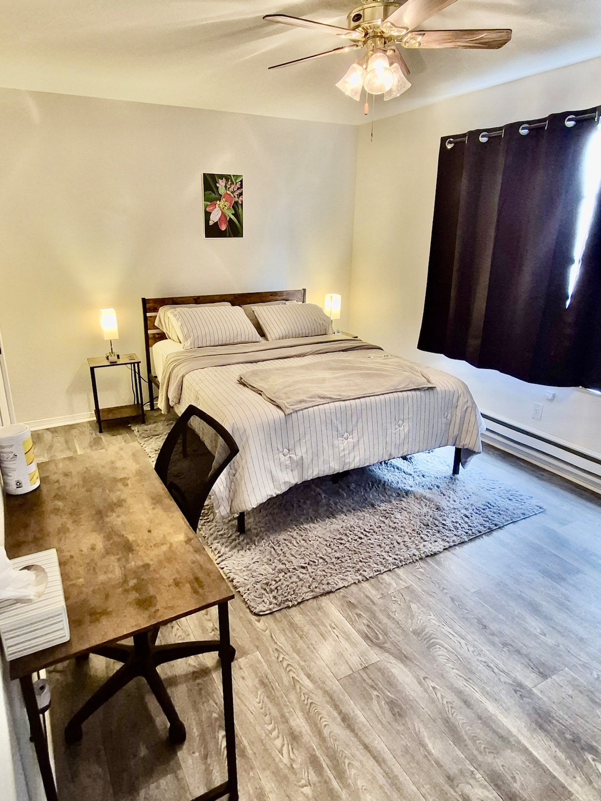 The Nest Apartment • Fully-equipped kitchen • Spacious living area to unwind • Full bathroom/Laundry • High-speed internet to stay connected and productive • King beds with privacy curtains for comfort • Dedicated workspace to power through tasks The Nest Apartment provides the perfect blend of style, comfort, and functionality. Whether you're here for business or leisure, you'll find everything you need to feel right at home, with the freedom and flexibility to make the most of your time.