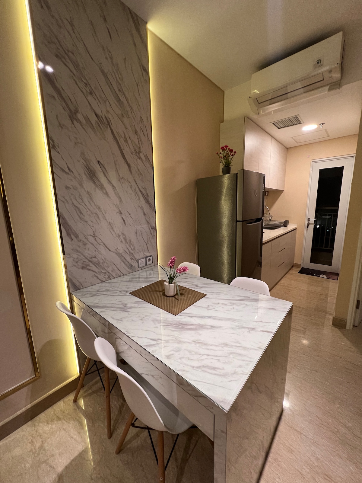 Empire Tower Podomoro Premium Apartment. Enjoy an apartment designed in Muji contemporary style - cozy, minimalist, and clean. Offering a calm and warm atmosphere for quality time with your family ❤ The interior blends function and aesthetics to ensure a truly comfortable stay. Strategically located in the heart of Medan, You and Your Family will be close to shopping, dining, and business areas. Ideal for efficient mobility. Direct access to facilities and to Deli Park Mall.