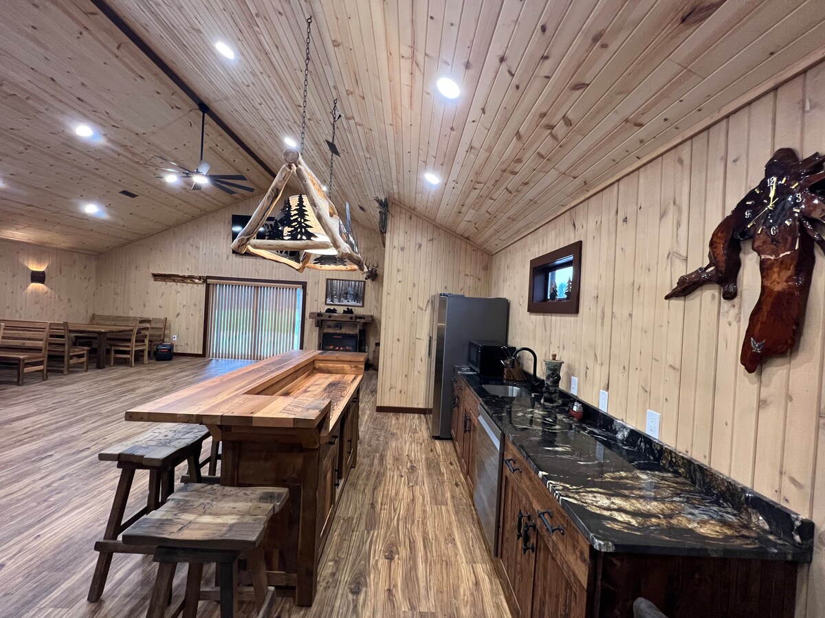 Rustic vacation home located in peaceful area of Hinckley. Conveniently located with easy access to downtown Cleveland, many supermarkets or restaurants, and right next to Ledge Lake Reservation. The home features 3 bedrooms with 8 queen beds allowing it to sleep 16. The property also has a separate outbuilding perfect for hosting larger groups of family and friends. Relax in this perfect location for your next group or family getaway and enjoy all the amenities this home has to offer!