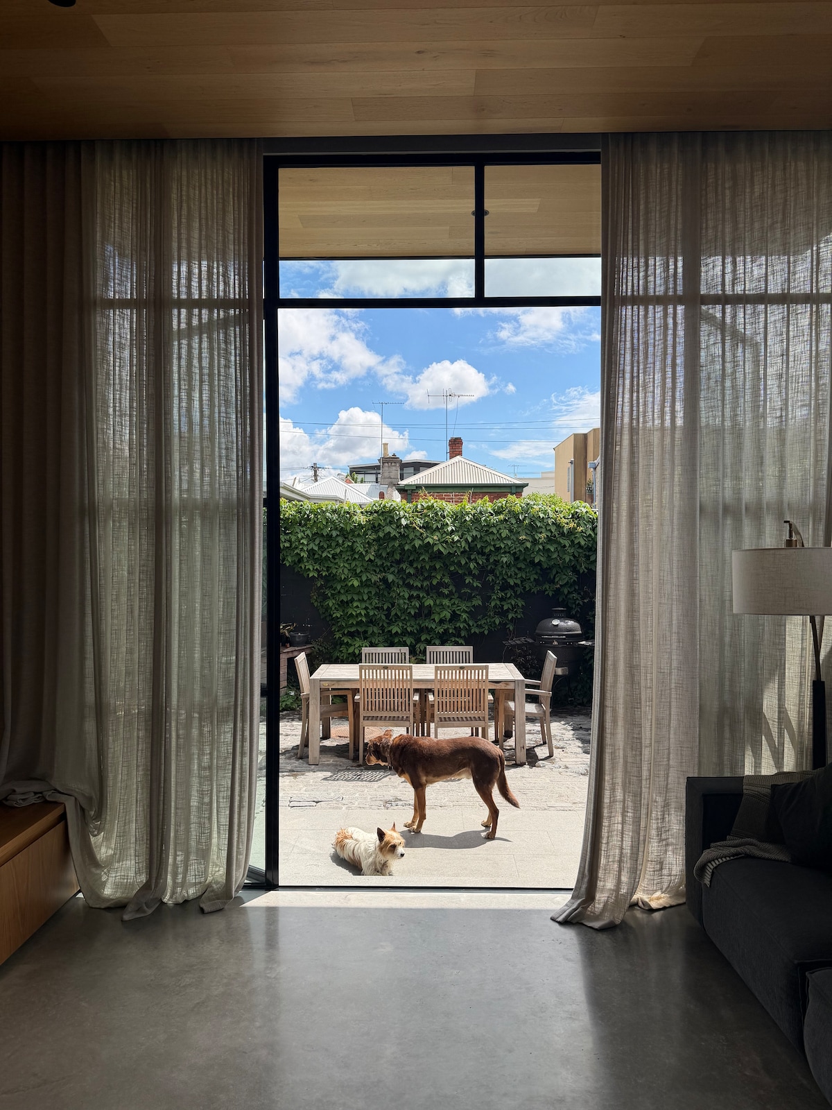 Welcome to the Gerty Longroom. Originally designed by Six Degrees, this open plan, split-level terrace is a living showcase to the artists and designers who make Gertrude Street a global icon. Expect Aesop products, MUD ceramics, and fresh produce and flowers from Gemima’s farm. The top floor master king, draped in Egyptian linen, overlooks the skyline and your private, Japanese-inspired garden with entertaining area, cabana and in-ground bath shaded by a maple.