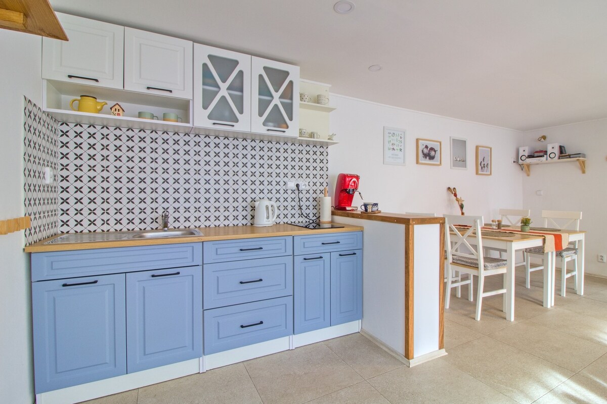 New, spacious apartment near the restaurant, in a picturesque village, close to the Kokořín Protected Landscape Area. Price per building. Maximum capacity - 6 people. Breakfast for an extra 200 CZK per person. Children by agreement. 2 bathrooms. Children's furniture - crib, high chair, potty. Garden - sauna - 1000 CZK, hot tub - 1000 CZK, or both 1500 CZK. Outdoor pool, fireplace, grill, Cameroonian sheep - friendly, feeding option. Hob, equipped kitchen, microwave, fridge, washing machine, coffee maker, bedding, towels. Pub across the street.