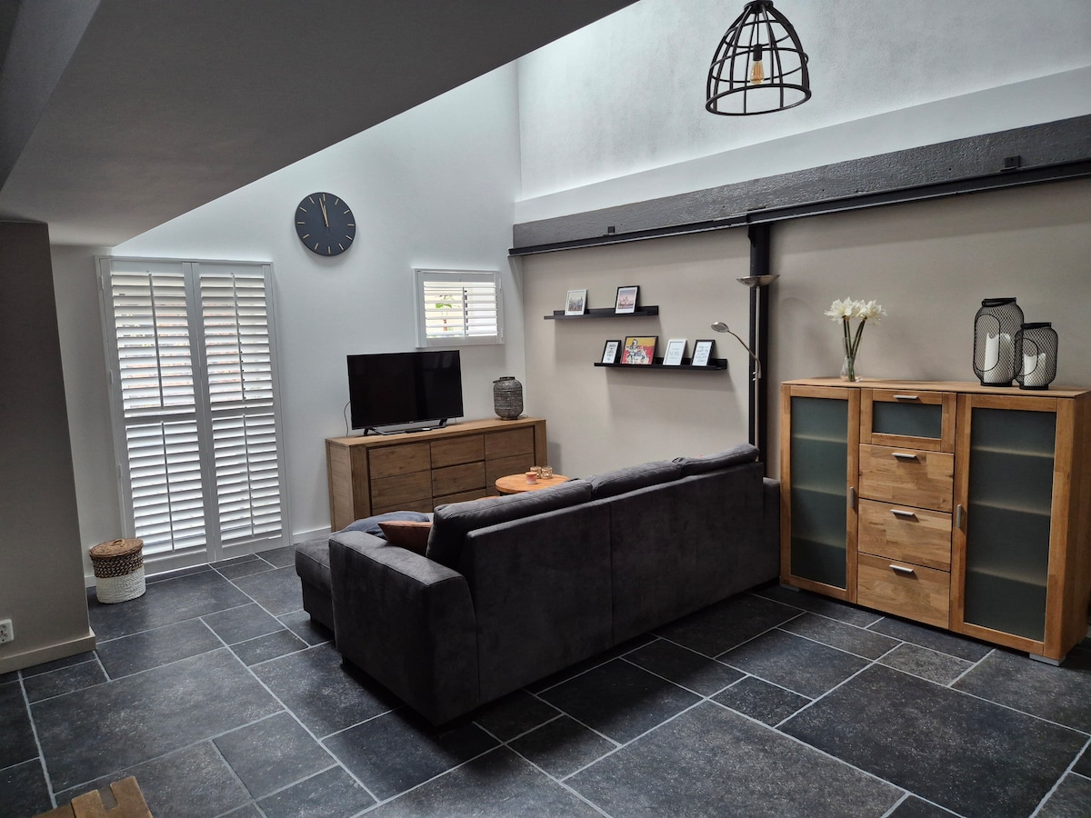 Welcome to Luna Loft! The Loft is a luxurious, very spacious and beautifully renovated living and working space, suitable for 4 people. You can celebrate holidays or work in peace and quiet, even for a longer period of time. The loft and nature will help you. Where now the very spacious living room is located, a few years ago the bales of hay and straw and the meter-long ash wood fruit ladders were displayed against the oak bunches. The Loft is 110 m2 and is located on the outskirts of the village 's-Gravenvoeren.