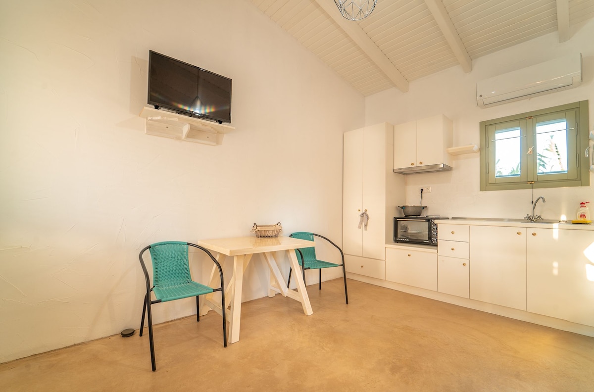 Located in a small olive grove literally just a few steps from Almiros Beach, these bohemian-chic hideaways are perfect for immersing yourself in the laid-back rhythm of Messinian life.The close proximity to the sea of this modern bohemian style bungalow makes for a unique atmosphere where you fall asleep to the sound of the waves.