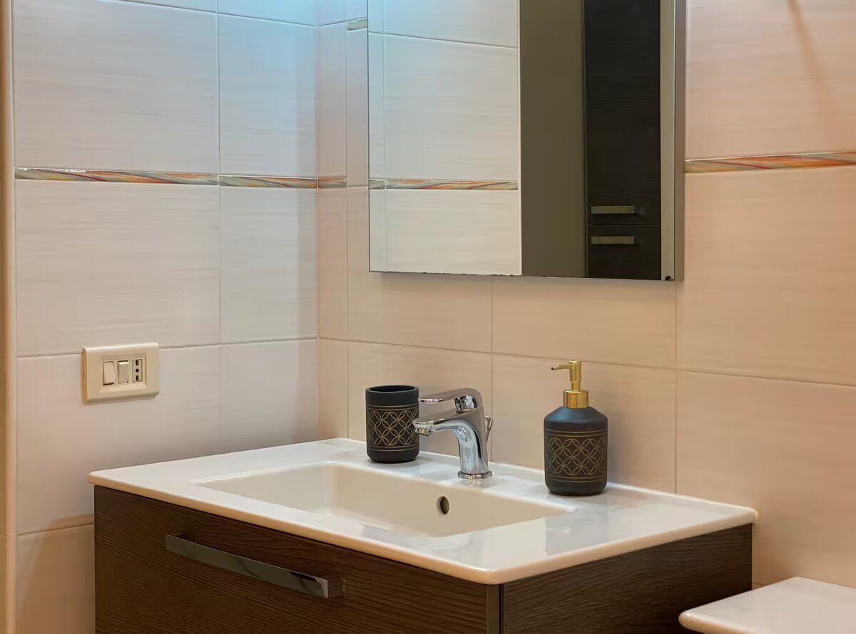 Cornice di Stile features 2 double bedrooms, 1 single bedroom, large living area with 2 double sofa beds, 65'' Smart TV with satellite channels, Netflix; 1 bathroom with jetted tub; 1 bathroom with large shower; equipped kitchen; 2 large terraces. In the large garden attached to the property, there is a luxurious and charming salt pool, of a deep blue inspired by nature, like the natural rock, which gives character and personality!!