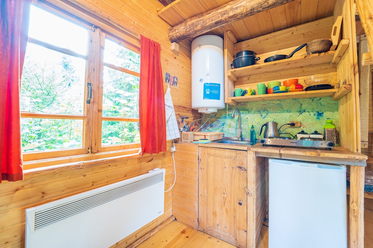 Just a 4-minute walk from Mestiaโs main square and 10 minutes by car to the ski lift. ๐ Stunning mountain views from the terrace ๐ Comfortably sleeps 4 guests ๐ณ Fully equipped kitchen ๐ Cozy living space with soft lighting โ๏ธ Air conditioning + heaters ๐งผ Fresh linens, towels, and essentials ๐ถ Wi-Fi ๐ ฟ๏ธ Free parking ๐ Very quiet and peaceful - ideal for rest Whether youโre here to explore or unwind, our cabin has everything you need. Book your stay today!