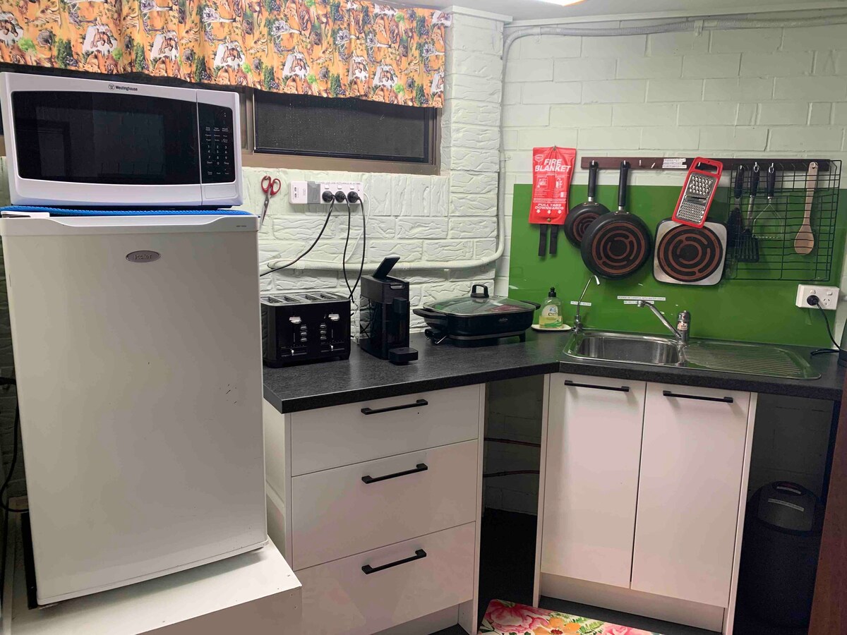 The ideal beach retreat for visitors who like quiet and comfort with their sand and sunshine. Central to Kingscliff town/ beaches. Featuring a comfortable queen bedroom/ensuite. Living/kitchen area- extra mattress available on request. Coffee Machine, Cooking facilities, fridge, microwave & tea-coffee. Peaceful outlook & short stroll to the beach, walking distance to town supermarket/restaurants. UBER to Coolangatta airport. Bike/surfboard hire. NOTE:We live in main house and share a backyard.