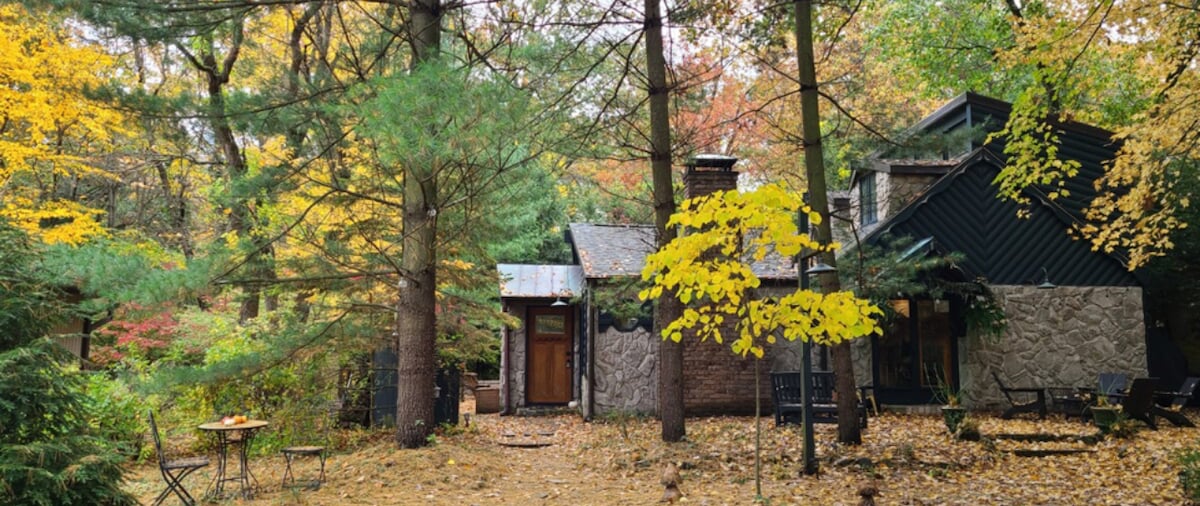 Luxury meets nature: forest cabin steps from the beach, 1 hour from Chicago. Book your escape to our designer log cabin on Lake Michigan just steps from the beach and nestled in a peaceful forest, it’s the perfect retreat. Built in 1932, our charming cabin sleeps 8 in 4 bedrooms. Enjoy 2 living areas, a stone fireplace, fire pit, games, puzzles & books. Featured in Country Living and the NYT, it’s perfect for families, friends, or retreats. Book now and create lasting memories in Michiana.