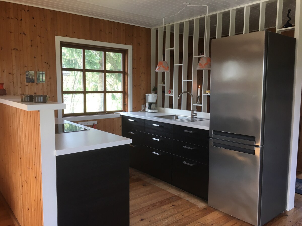 This newly renovated and stylish cottage is suitable for the large family or as a shared cottage. Via a green path, there are 200 m to a lovely child-friendly beach with a jetty and campfire area. The house's terrace has sea views and full sun all day long and you can look forward to evening sun and beautiful sunsets. The cottage is located in a quiet and beautiful area that invites relaxation and coziness by the water. The kitchen-living room works perfectly for a large group that can both socialize and cook.