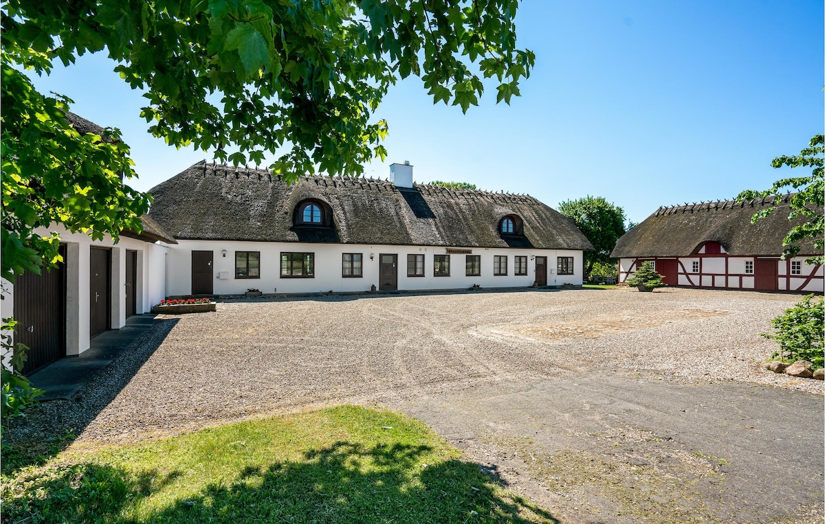 "Skovgården" - 200 m from the sea. Furnished with two rooms, newer kitchen in open connection with dining area and living room as well as a small toilet. Separate, somewhat primitive bathroom with washing machine and fridge/freezer. Large terrace with the possibility of sun all day. Plenty of garden furniture, kettle grill and gas grill. Possibility to spend the night in the shelter. Child-friendly beach with the most beautiful, finest sand. There is a basis for long walks as well as bathing. At low tide, small islands appear, inviting you to play.